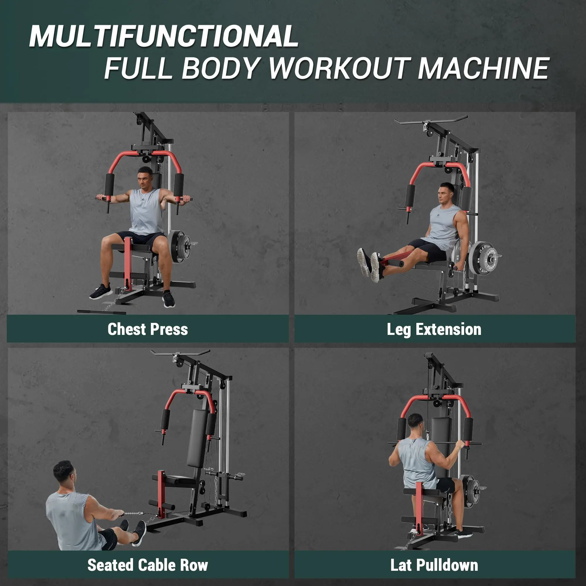 5-in-1 Full Body Strength Solution: Focus on every major muscle group with one streamlined machine! Perform Lat Pulldowns, Chest Presses, Leg Extensions, Seated Rows, and Butterfly exercises to build arms, back, chest, legs, and core—no extra equipment or clutter required.