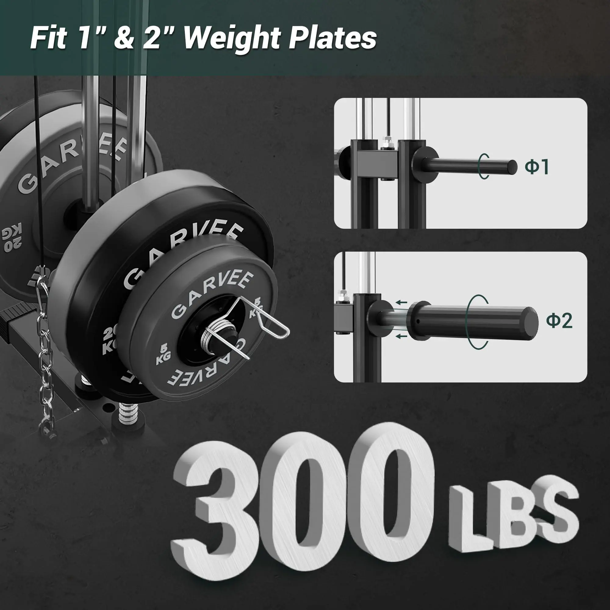 Commercial-Grade 300LB Capacity: Built with industrial-strength carbon steel and reinforced 7-strand steel cables, this machine safely supports up to 300 lbs. Compatible with standard 1″ or 2″ weight plates (sold separately), making it easy to scale your workouts as you grow stronger.