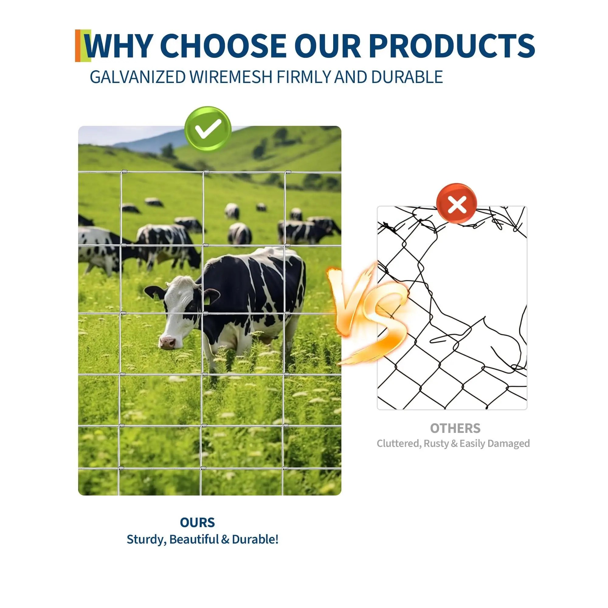 Robust Construction: Our cattle fence is crafted from high-quality 14 gauge galvanized steel wire, and has exceptional strength and durability, ensuring reliable protection on your farm