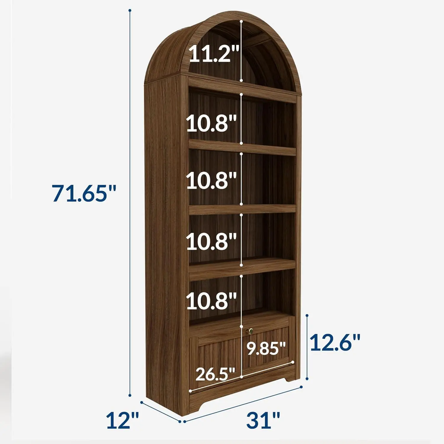 Elegant arched design for modern spaces, featuring a graceful curved arch top and sleek metal handles, this arched bookshelf blends classic style with contemporary charm, it serves as a striking centerpiece in living rooms, home offices, or bedrooms, offering both eye-catching display and practical storage for books and décor.