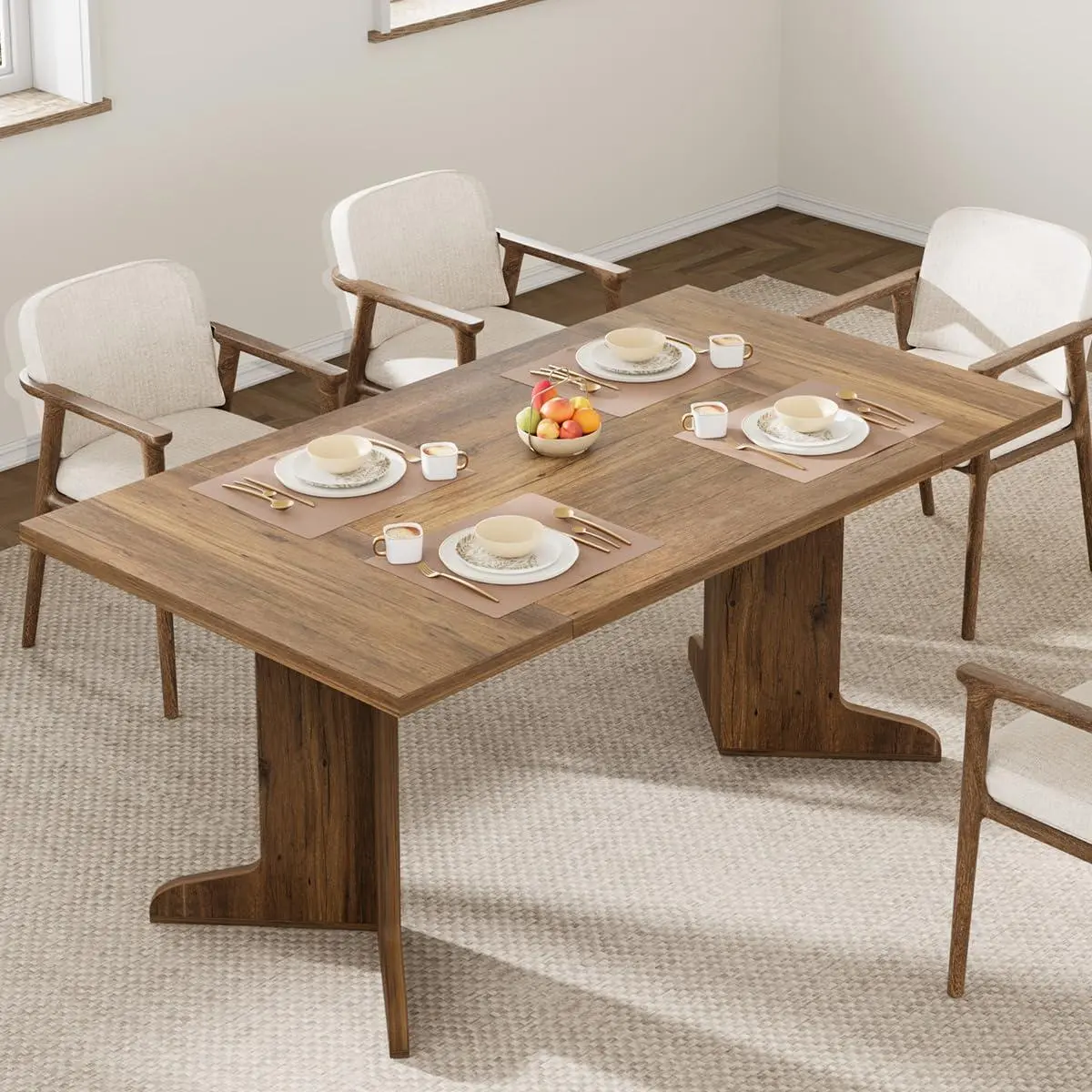 The distinctive narrow legs are paired with high-end V-shaped feet combined with its farmhouse-style color scheme to create an eye-catching and elegant aesthetic that can add warmth and charm