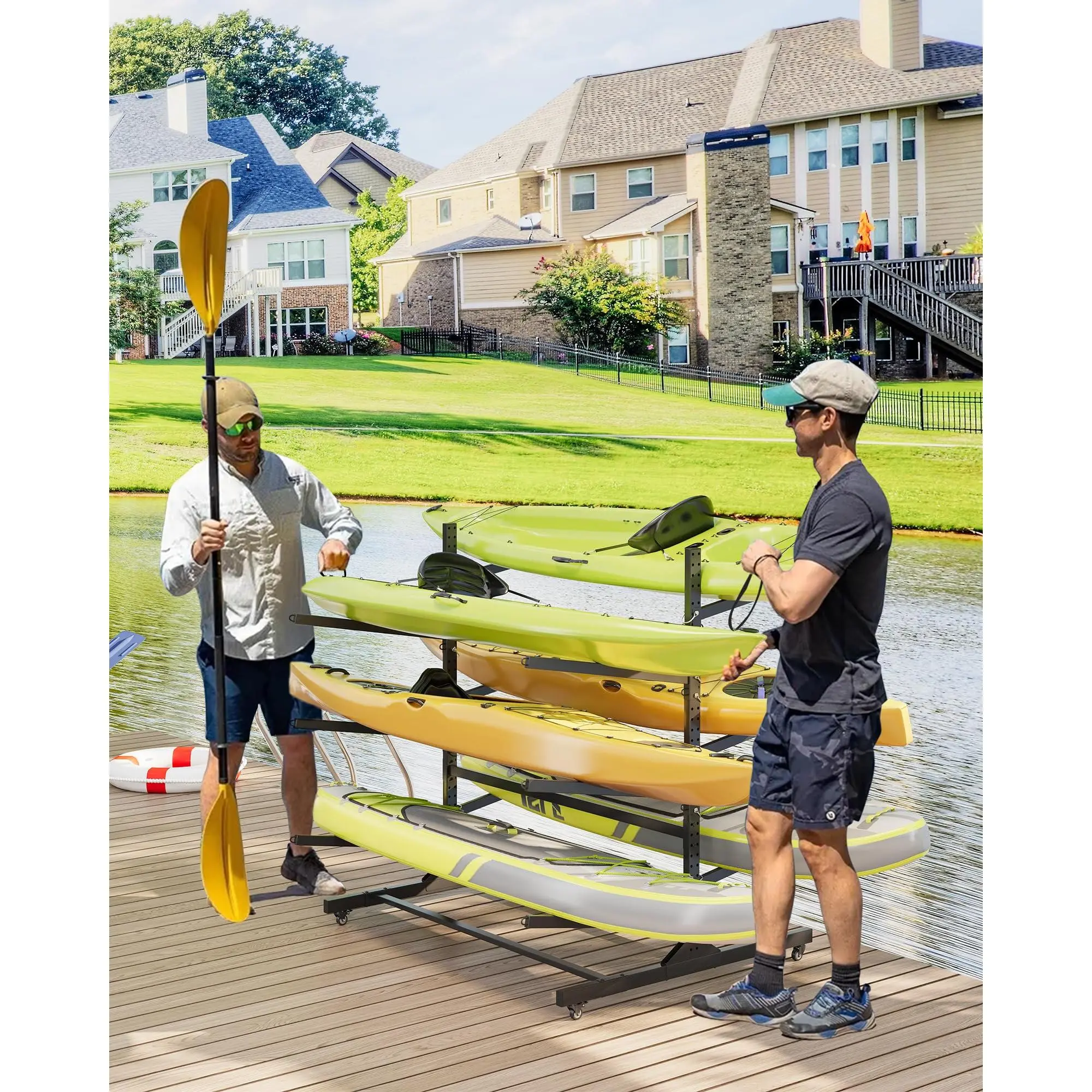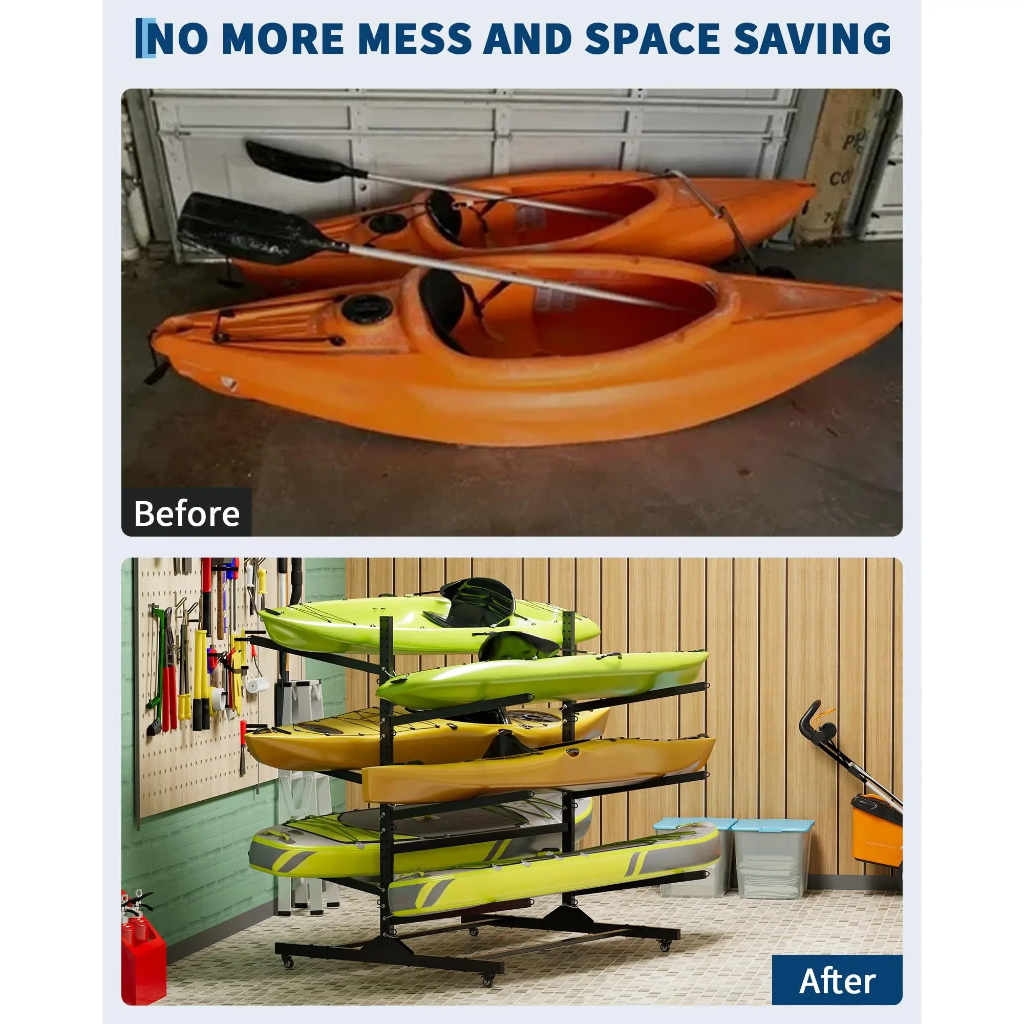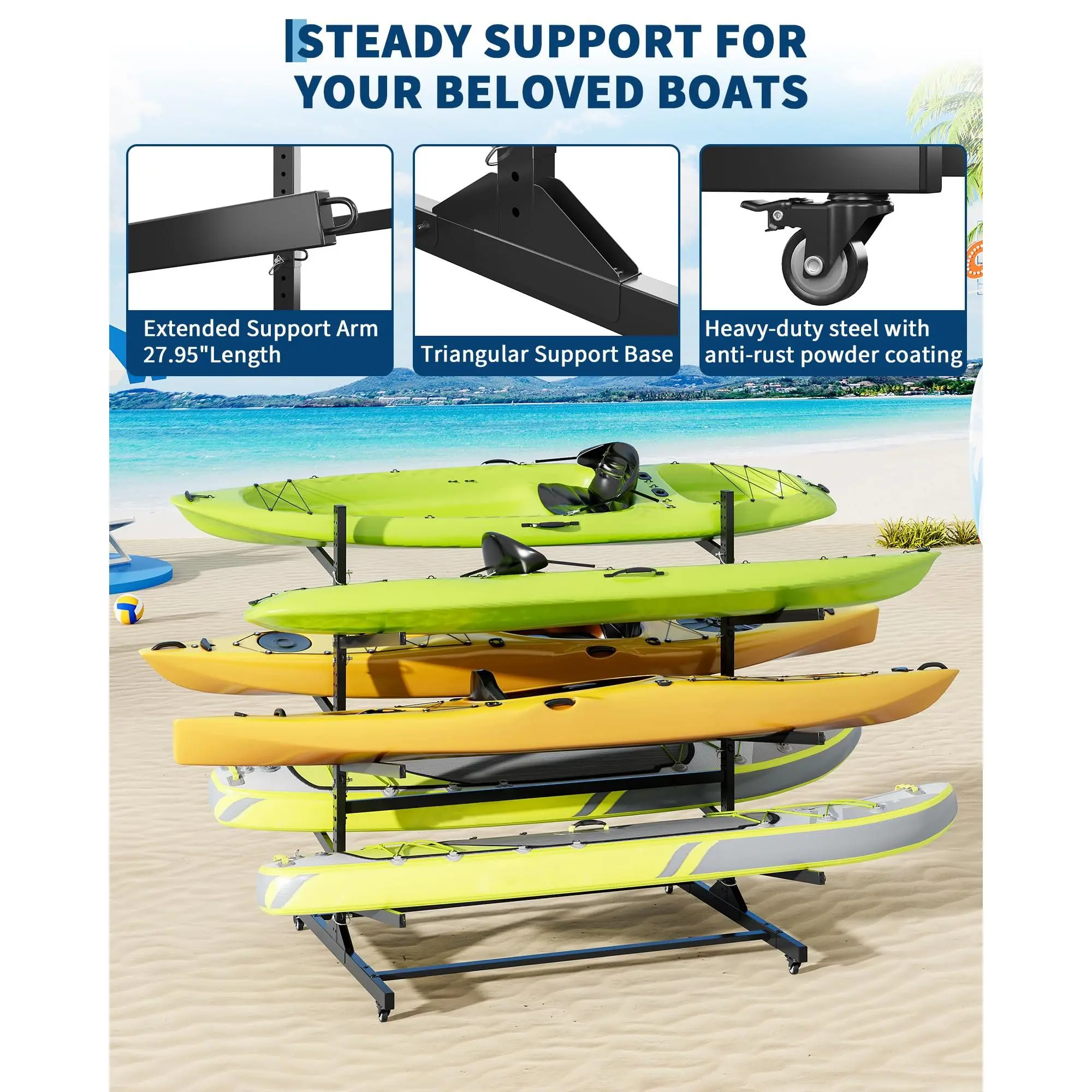 Professional 2-Kayak Storage System – Crafted from industrial-grade, powder-coated steel with superior corrosion resistance. Features an engineered triangular base for maximum stability, supporting up to 2 kayaks with an impressive 200 pounds weight capacity.