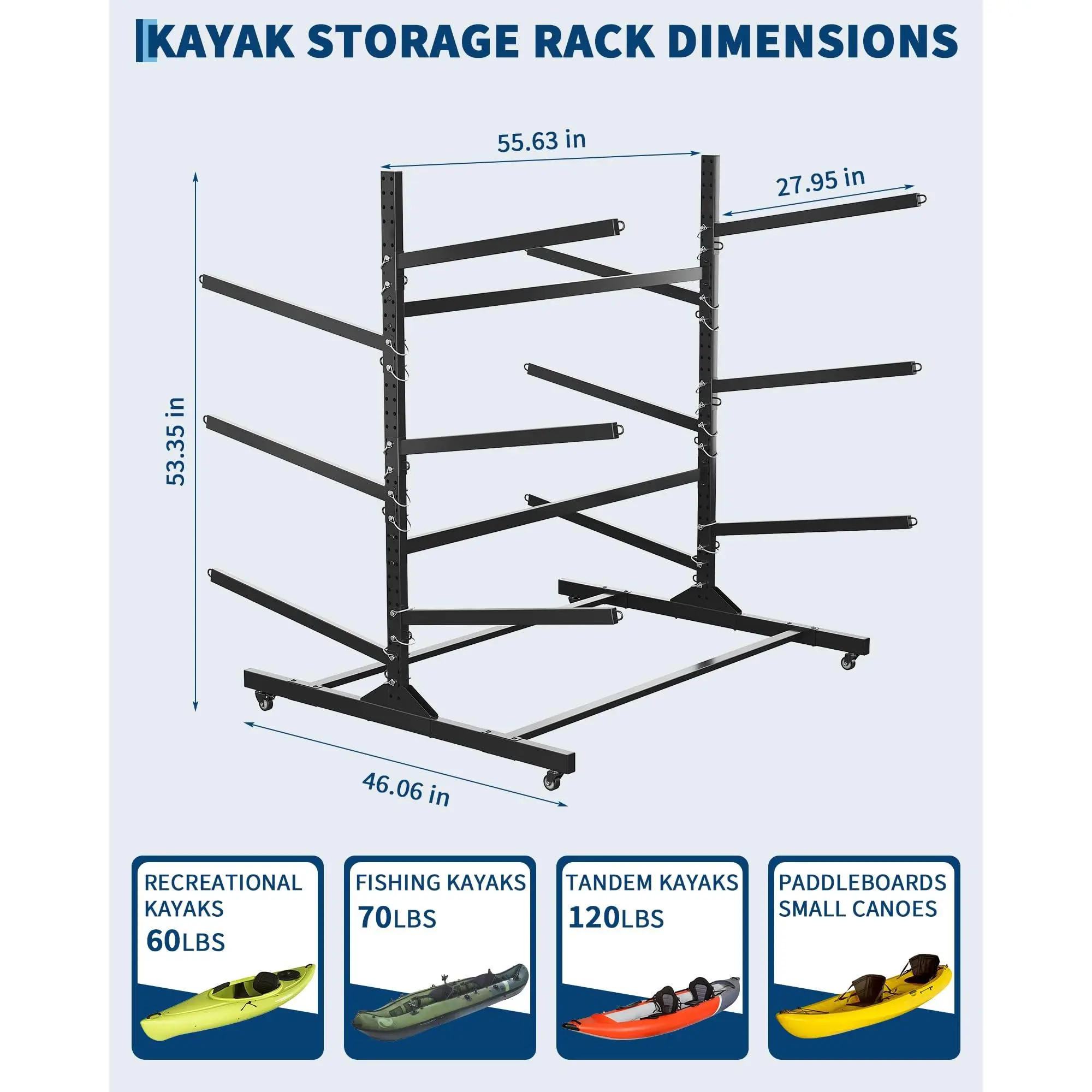 UPGRADE SIZE – Kayak rack for garage has a height of 30 inches, with a 22 inches arm length, and features adjustable spacing between the arms, allowing it to better accommodate kayaks of various sizes. This design significantly enhances the rack's versatility and adaptability.