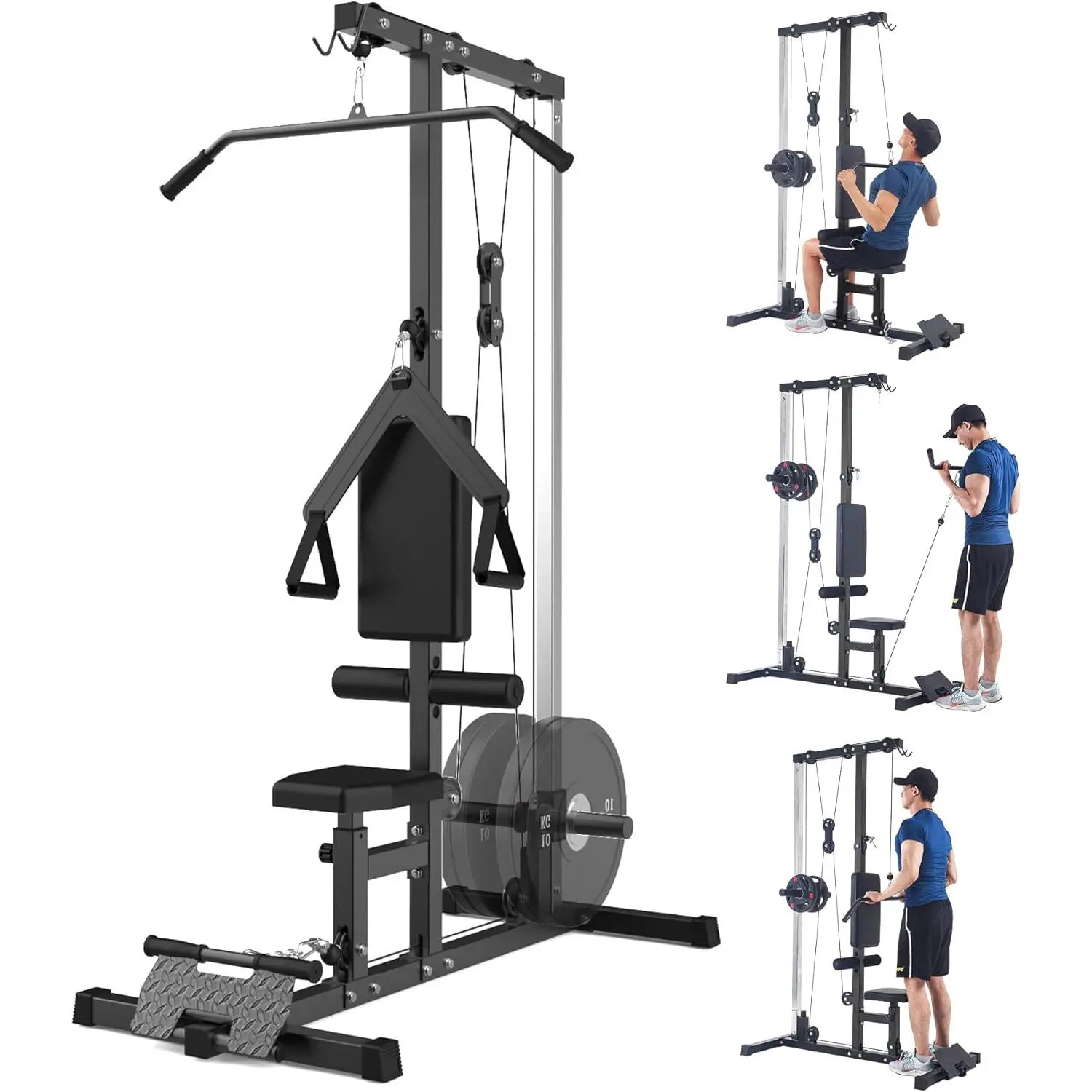 LAT Pulldown Machine, Multi-Functional Cable Machine with High and Low Pulley Station, Row Cable Machine, High Leg Support, Tricep Workout Equipment
