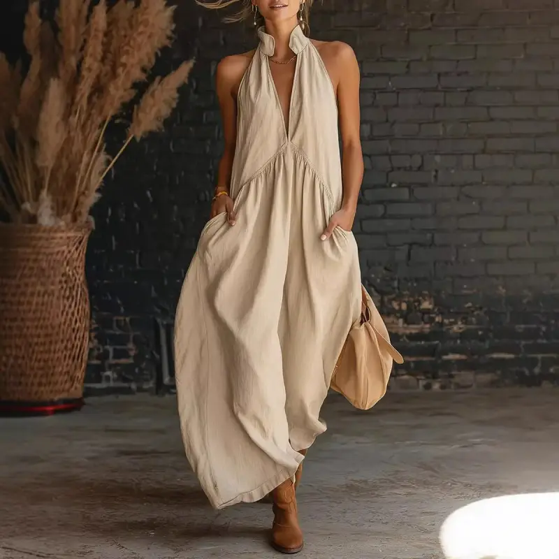2026 Minimalist Halter Neck Maxi Dress | Casual Loose Fit Pocket Dress | Effortless Summer Outfit for Women # MaxiDress # HalterNeckDress # BohoFashion # SummerDress # CasualDress # WithPockets # DressesForWomen # Outfit of the Day