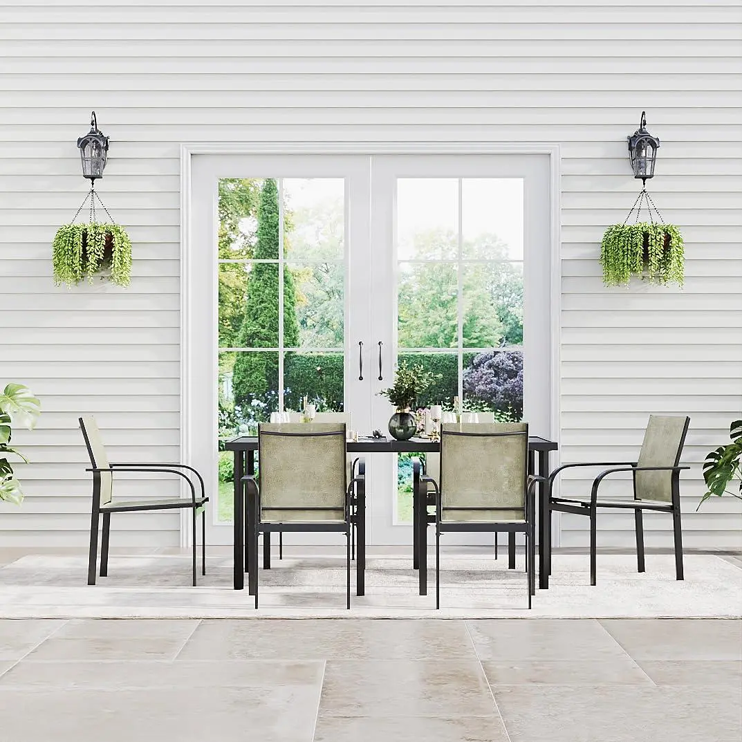 Breathable Chairs for Comfortable Seating Each chair features a breathable textilene seat and back that helps promote airflow and offers supportive comfort, making this outdoor dining set ideal for warm-weather use.