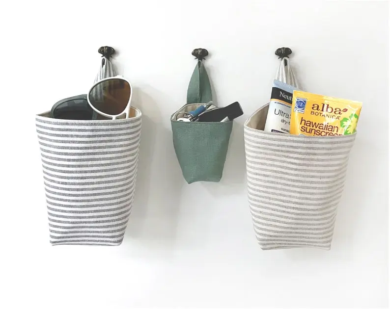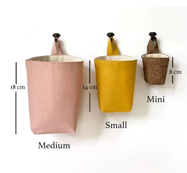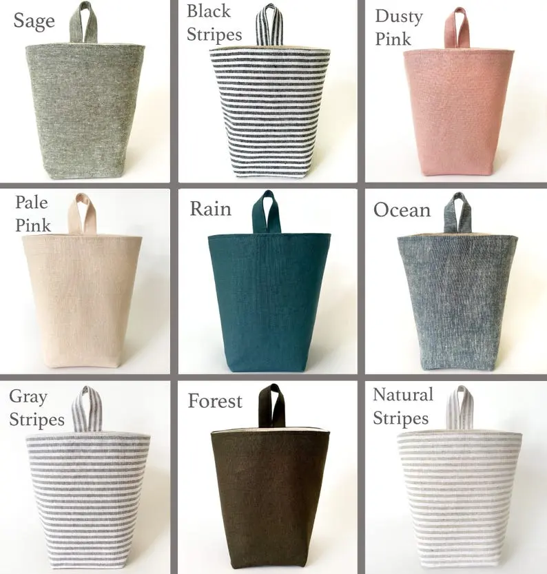Hanging Linen Fabric Basket | Reversible Canvas Storage & Organizer Bin | Washable Home Decor Plant Basket | Mini, Small, or Medium