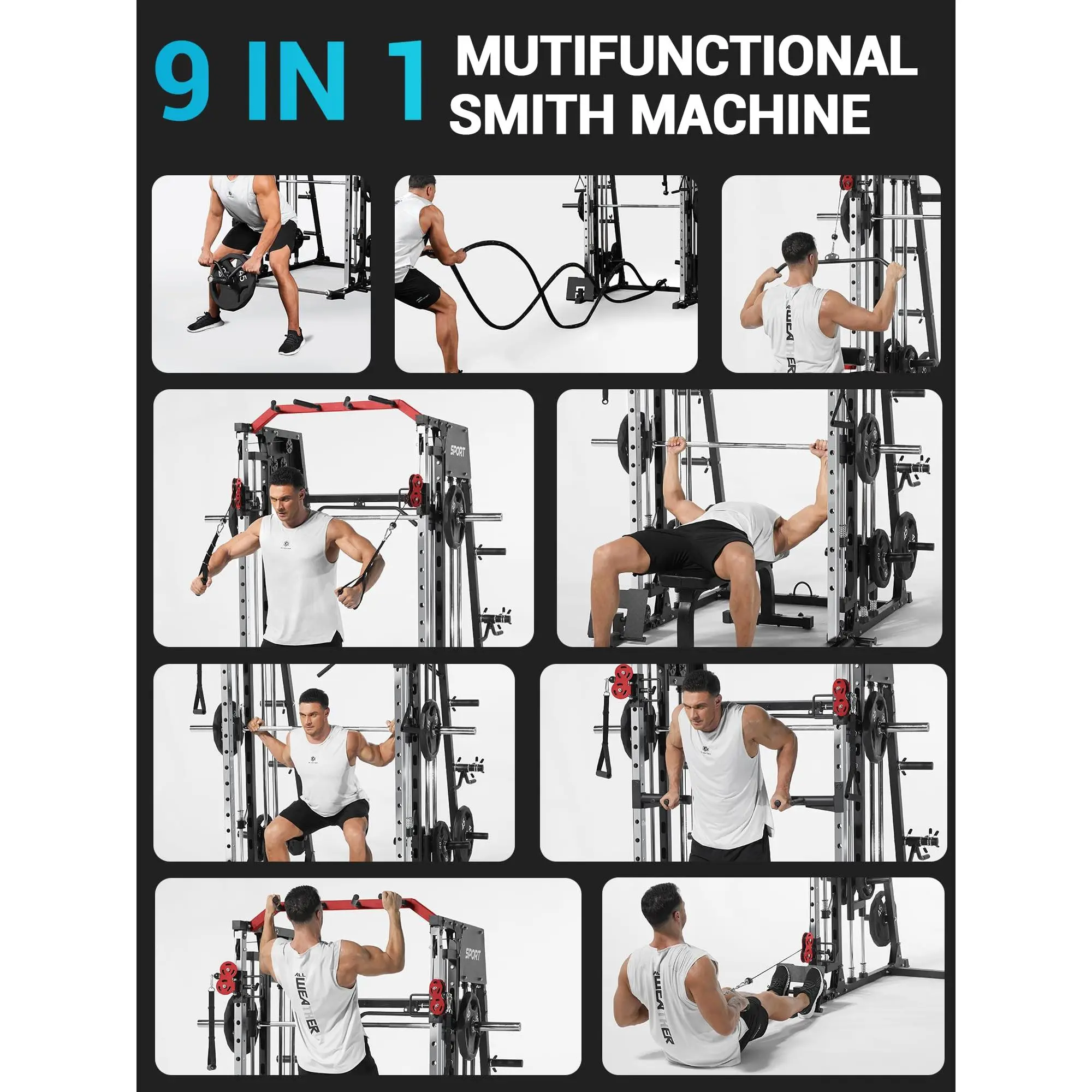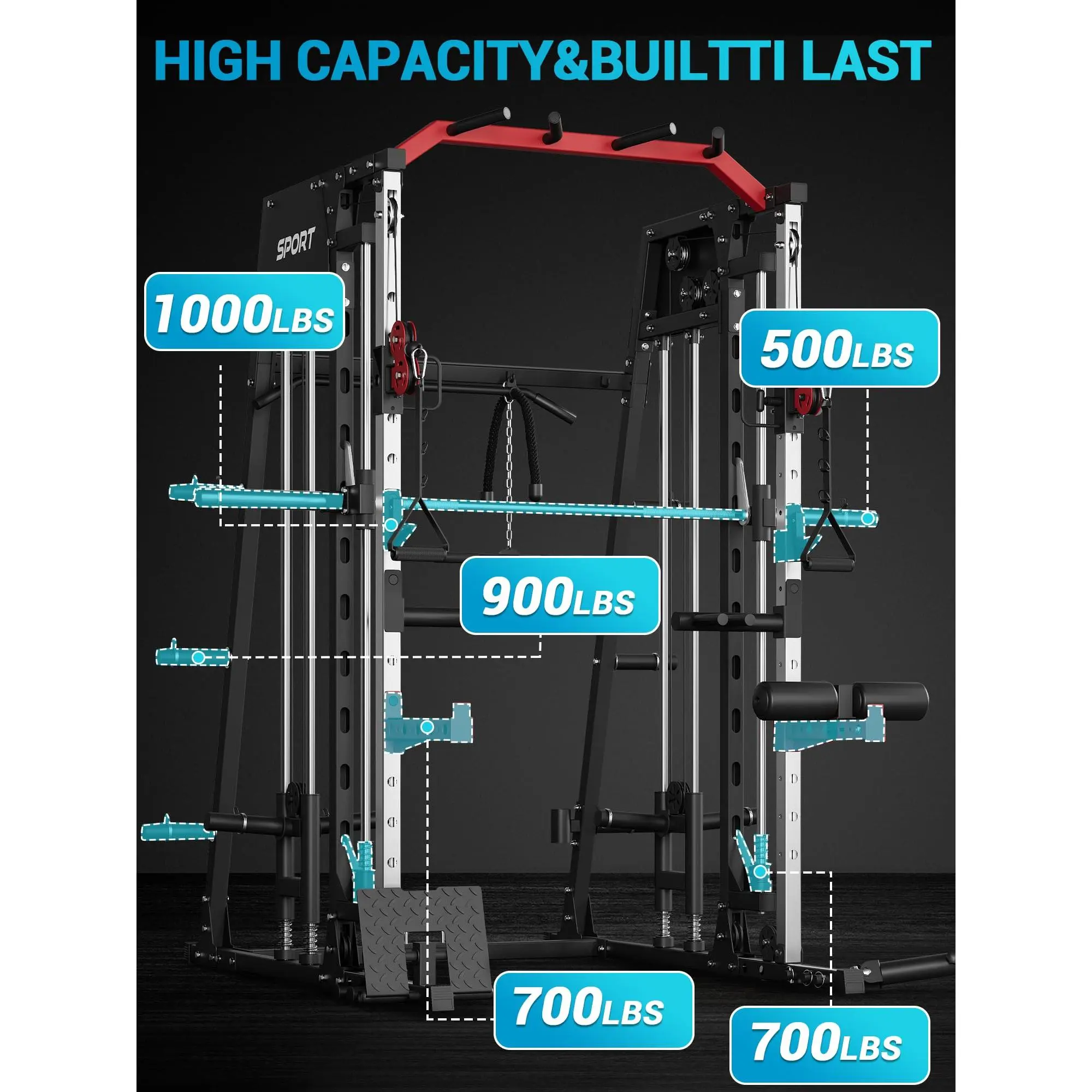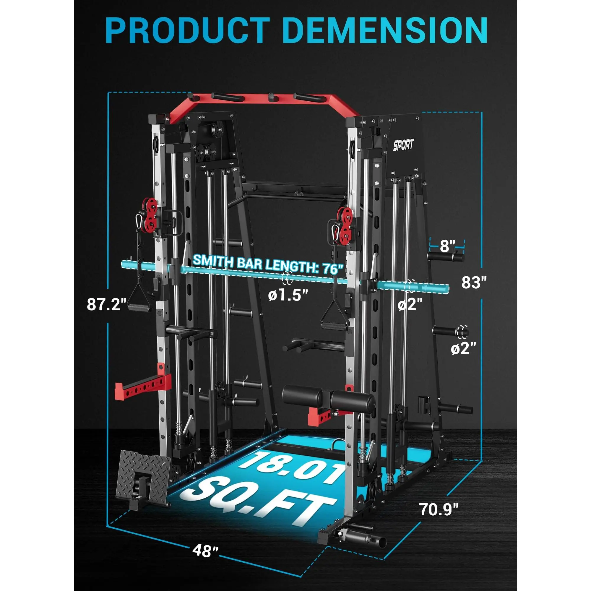 【Dual Pulley System for Versatile Training】Built with independent dual pulleys, this Smith Machine allows smooth resistance training for multiple exercises. Perfect for working out solo or training with family and friends, offering gym-level functionality at home.