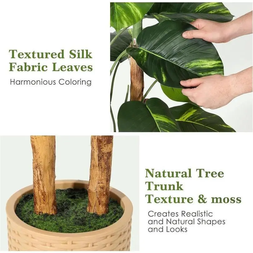 Easy Setup & Realistic Display:The plant may ship slightly compressed, but with a quick adjustment of the leaves, it will look just like the image shown. The trunk is elegantly wrapped in a banana skin design, adding an extra-exotic touch for a tropical vibe.