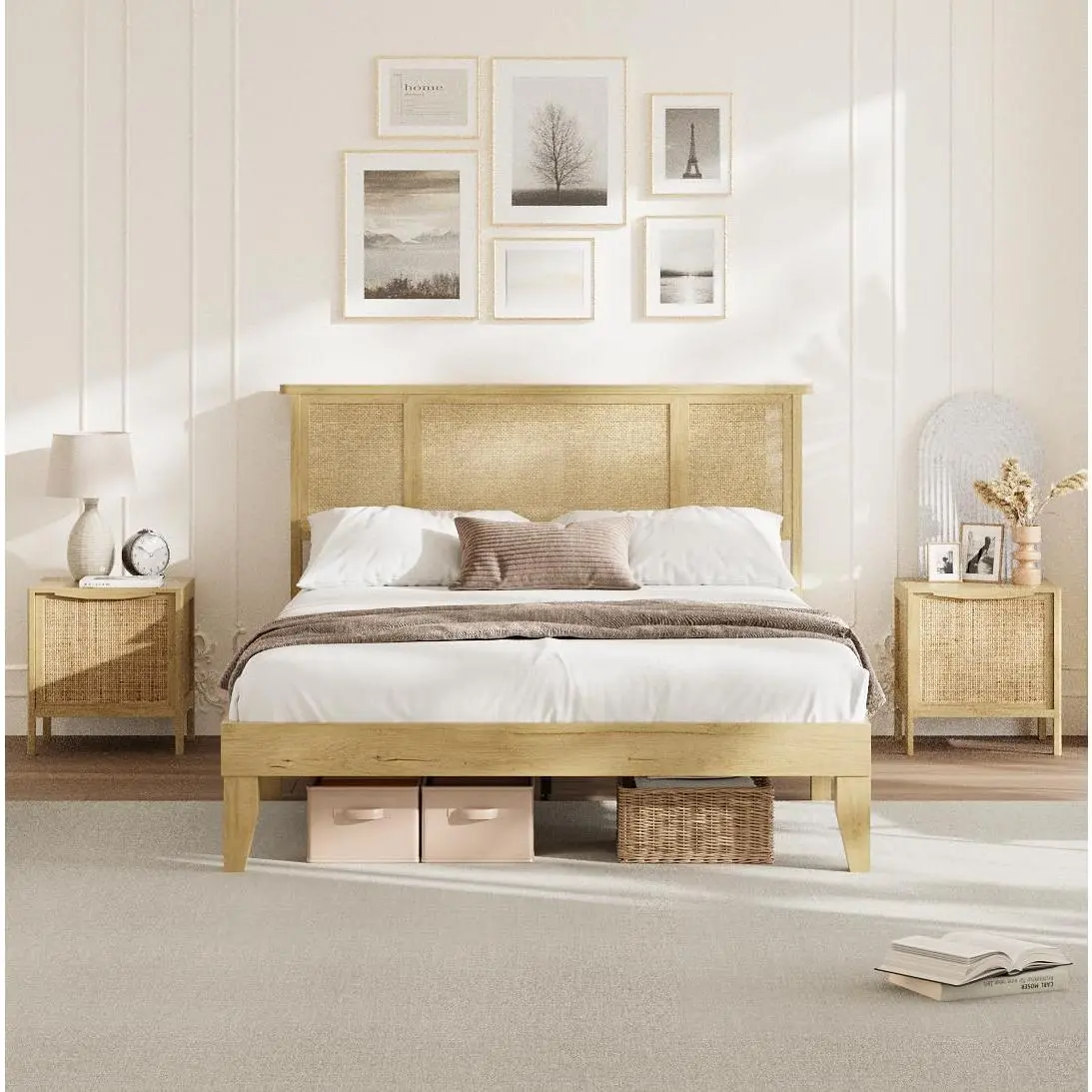 Natural Rattan Headboard – Adds a warm, boho touch to elevate your bedroom décor style