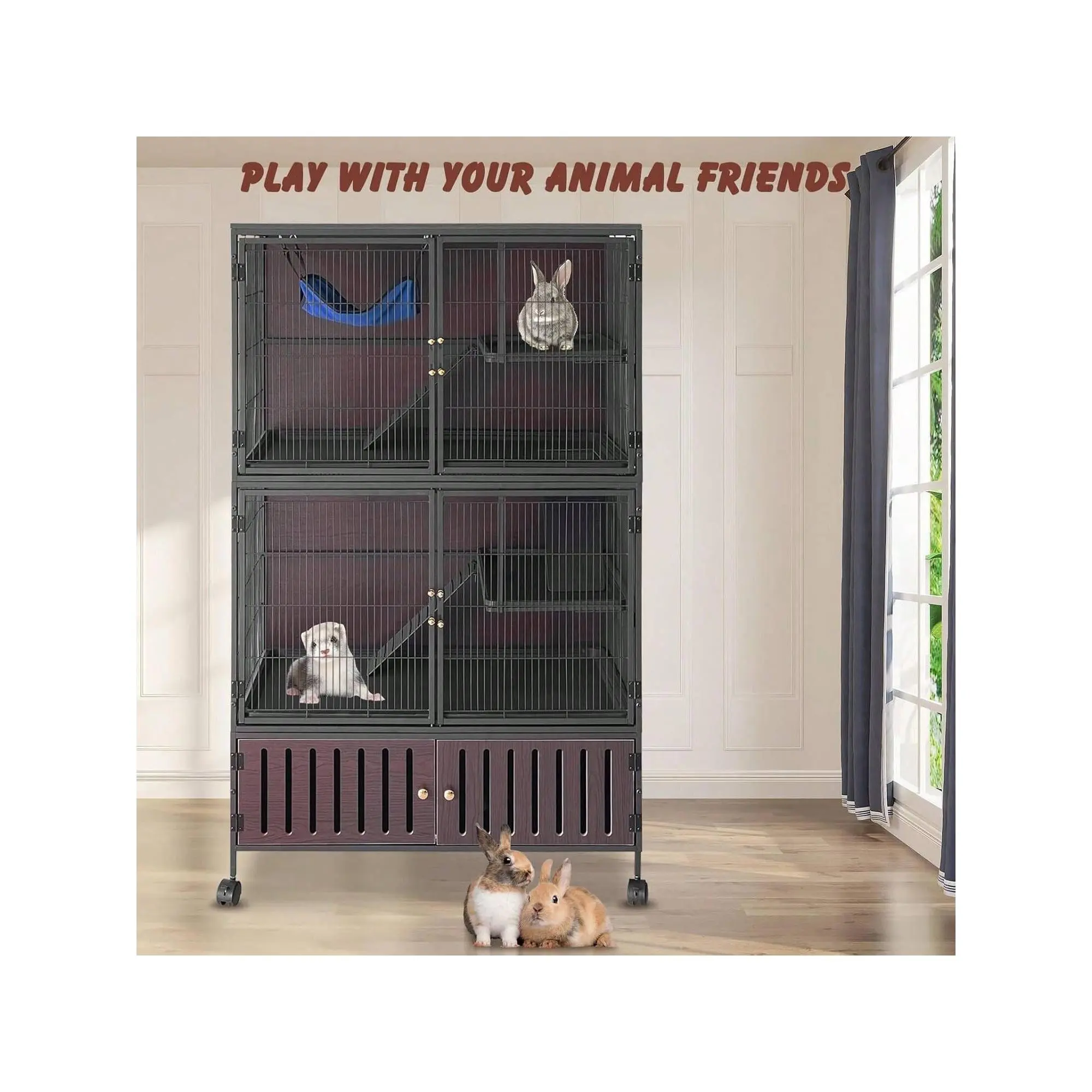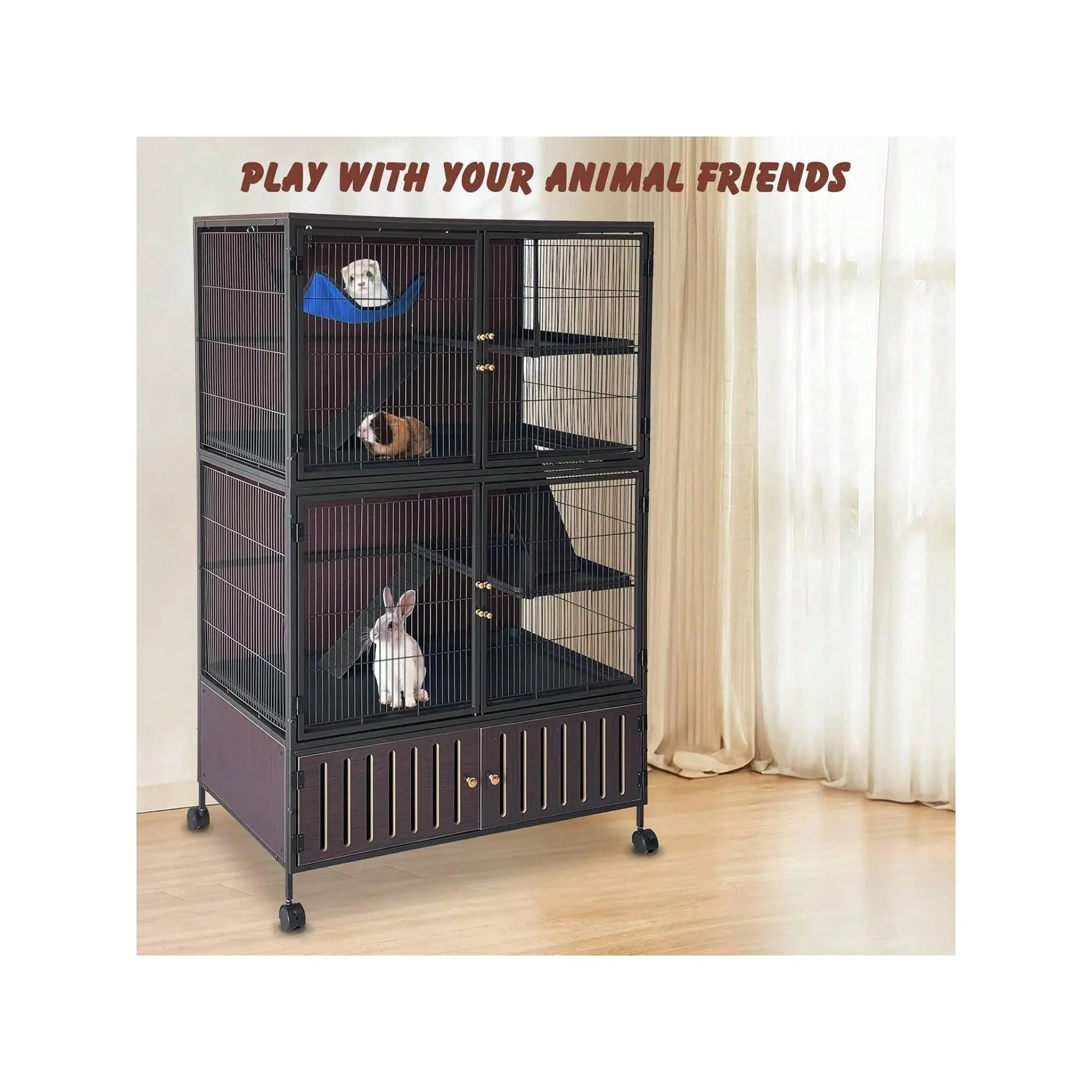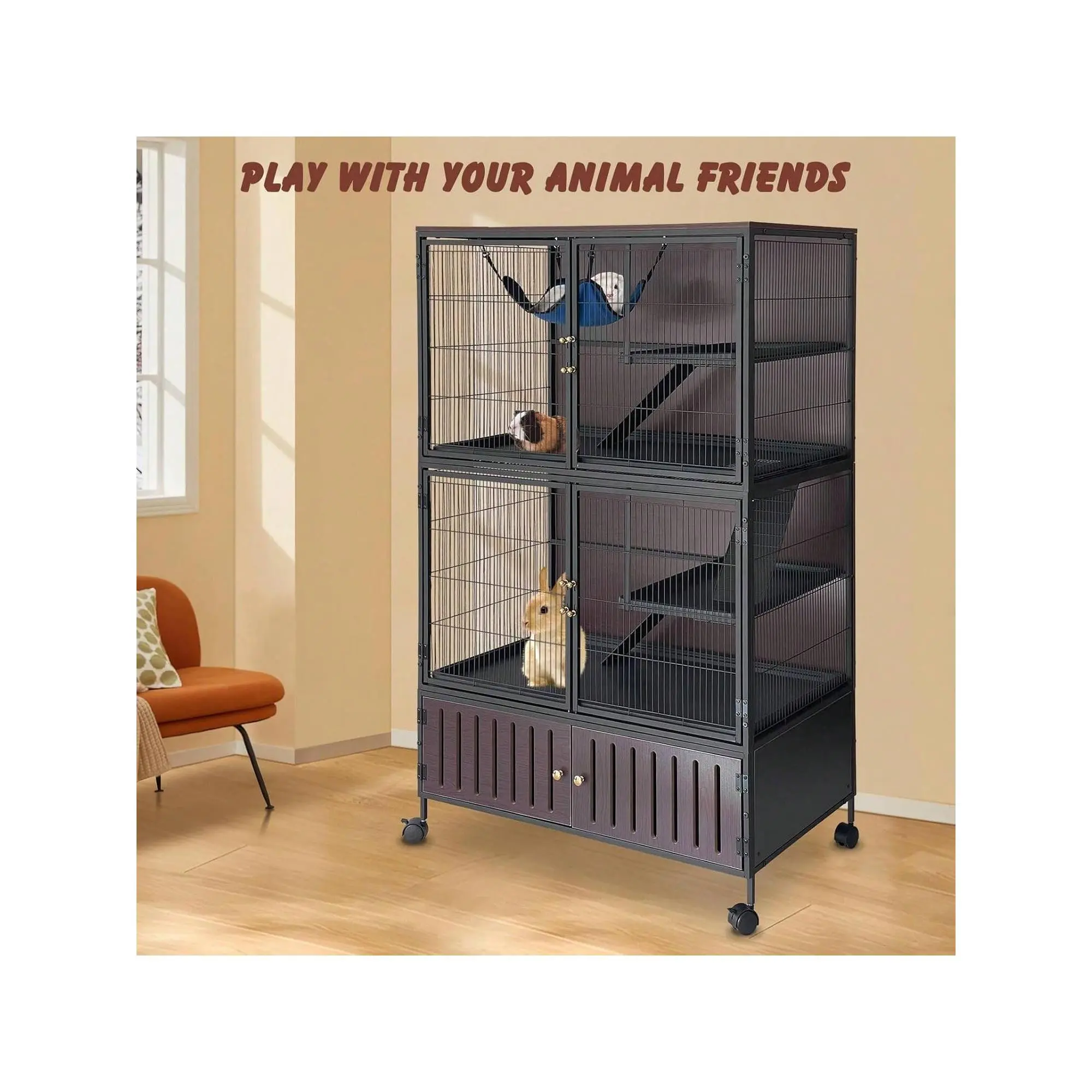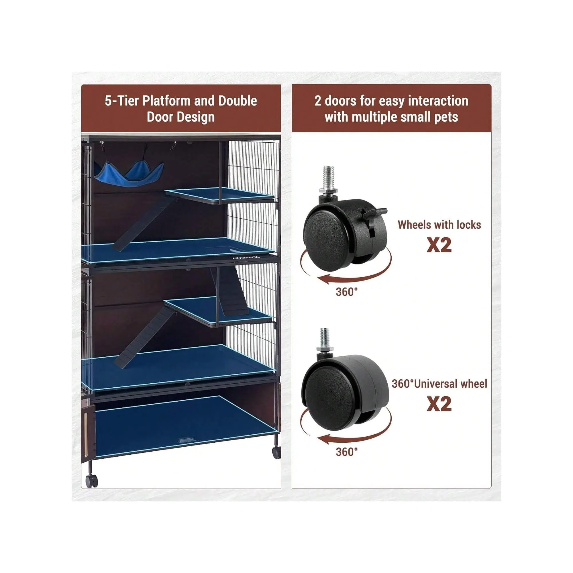 [Silent Universal Wheels for Sensitive Pets]The pet cage is equipped with four 360° silent universal wheels (two are lockable), and the shock-absorbing rubber casters minimize noise, suitable for pets such as chinchillas and sugar gliders that are sensitive to sound.Elevate your pet's lifestyle with a premium habitat that redefines co-living for you and your furry family.