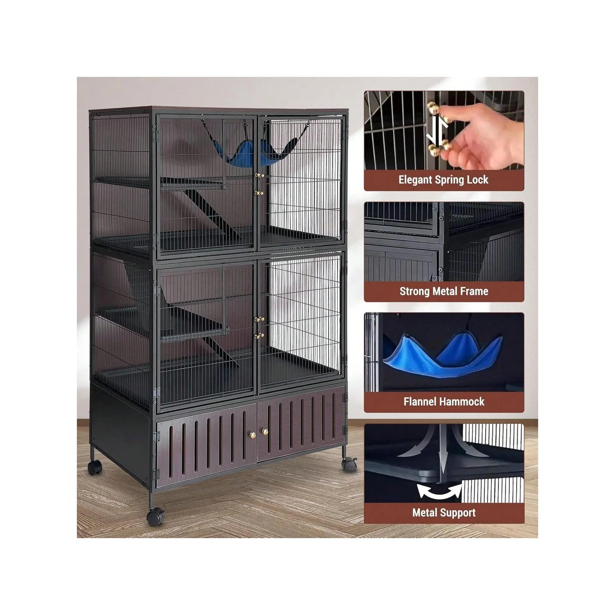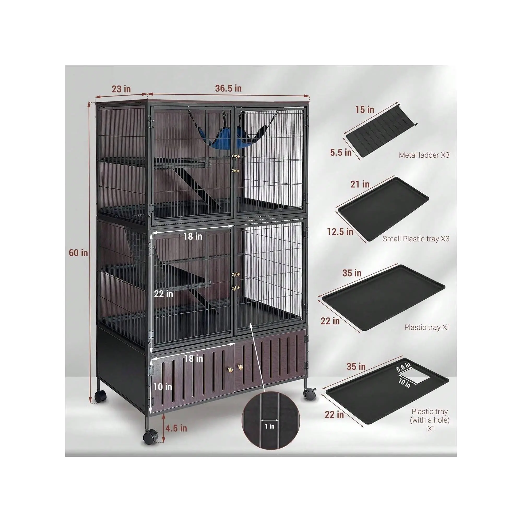 [Spacious Space]Designed to cater to small animals' natural instincts, this metal ferret cage features multi-level living spaces up to 60 inches high for climbing, exploring, and lounging. The vertical hammock design is ideal for active sugar glider to play freely. A storage cabinet keeps food and more, transforming the cage into a functional and aesthetically ple asing pet villa.