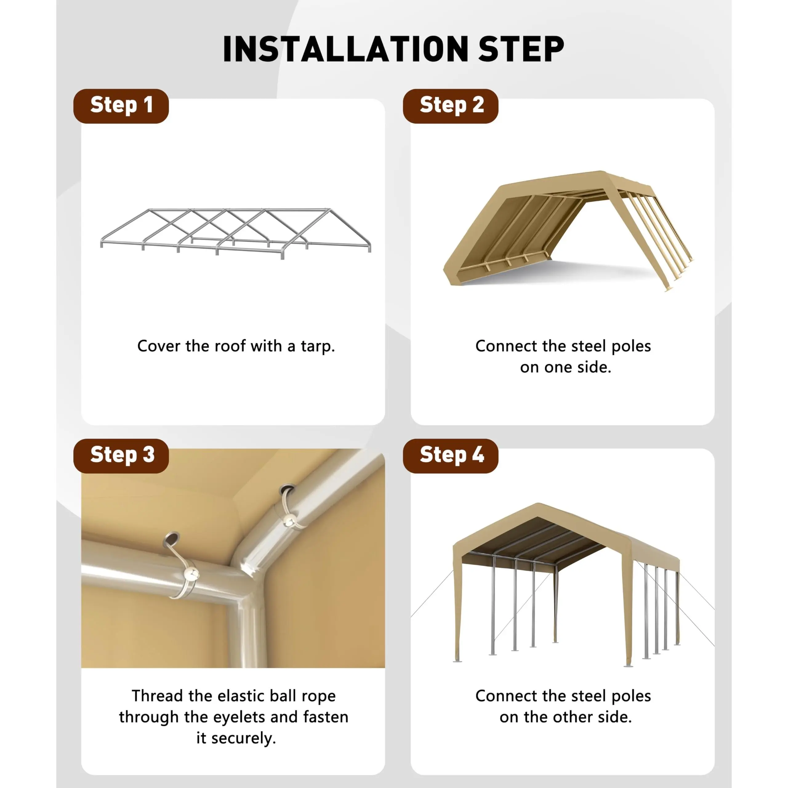[Wide Applications] Ideal for both commercial and recreational use, this canopy is perfect for carports, parties, weddings, and more. (Note: Only the carport top cover is included; frame not included.)