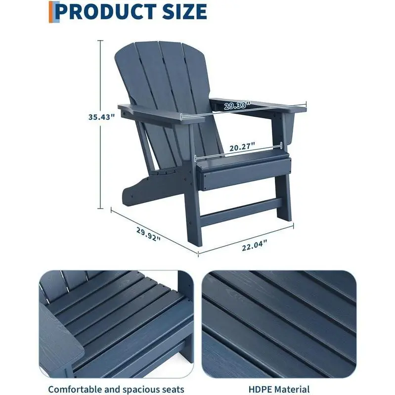 【Weather-Resistant HDPE Material】Crafted from high-density polyethylene (HDPE), our Adirondack Chair Outdoor is built to withstand harsh weather conditions including rain, sun, and snow. Unlike wood, this Adirondack chair plastic outdoor option won't crack, fade, or peel—making it ideal for year-round use on your patio, lawn, or backyard.