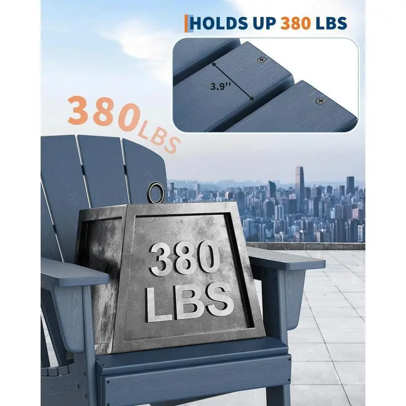 【380 LB Weight Capacity & Stable Design】Engineered with a reinforced structure, this Adirondack outdoor chair supports up to 380 LBS, offering reliable seating for everyone. Its wide armrests, contoured seat, and slanted back provide ergonomic comfort for hours of relaxation by the firepit or poolside.
