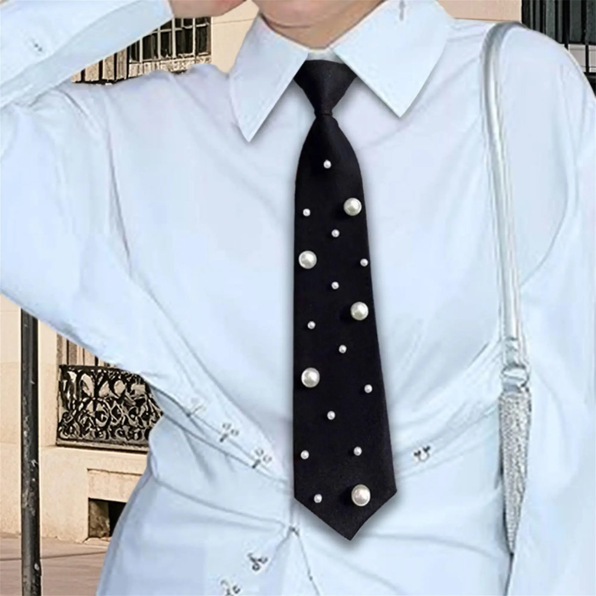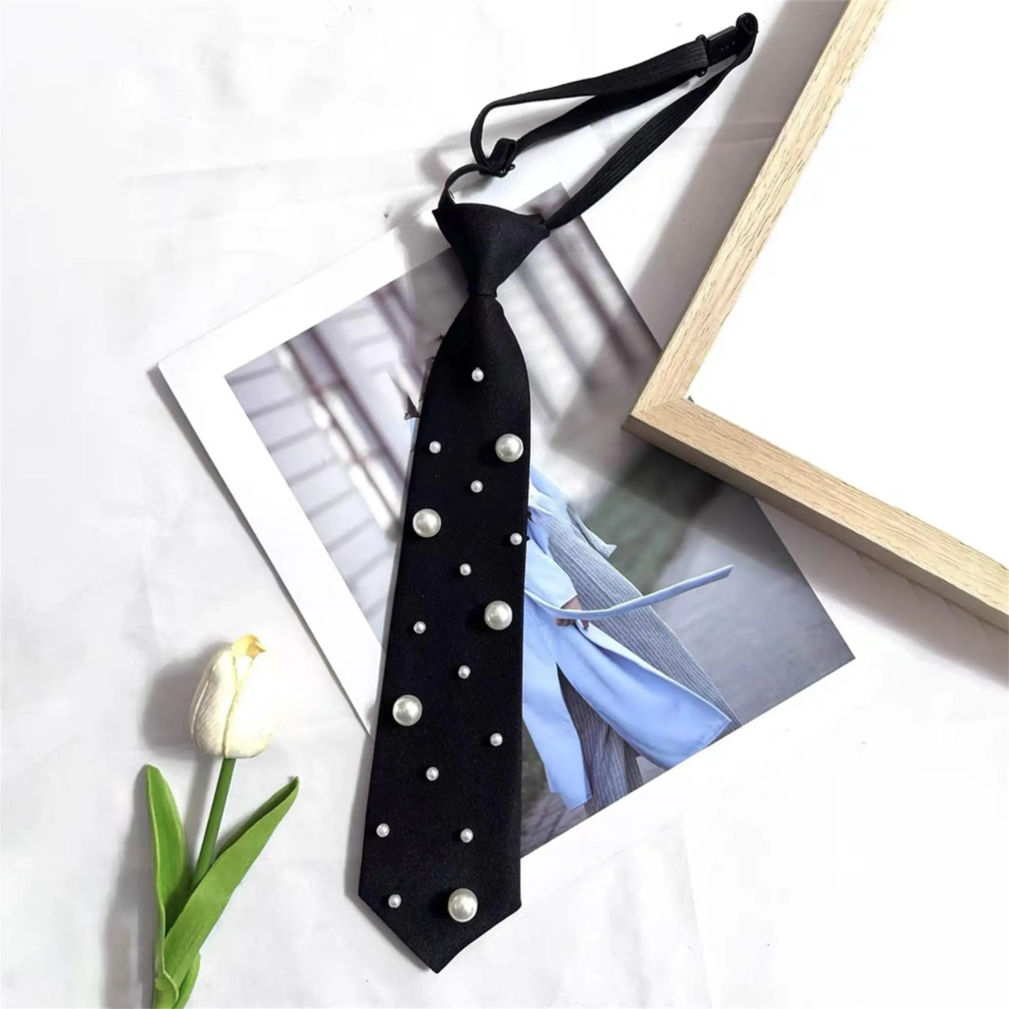 Elegant White Pearl Bow Tie Necklace for Women Fashionable Accessory for Parties and Everyday Wear Pre-tied Statement Piece