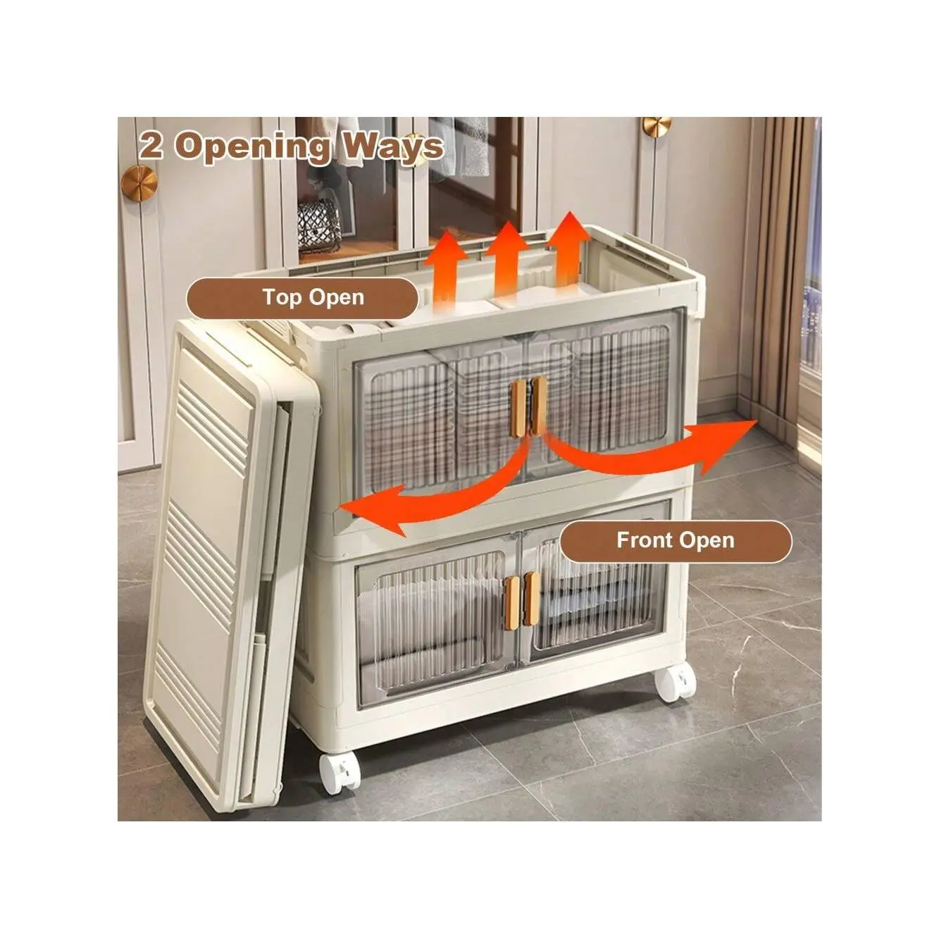 84QTx 4 Storage Boxes: The volume of each tier of storage bins is approximately 84QT, the storage box measures 31.5inx15.7inx13in each tier, offering ample storage capacity. The translucent opening door design allows you to find your items instantly, helping you save time and stay productive.