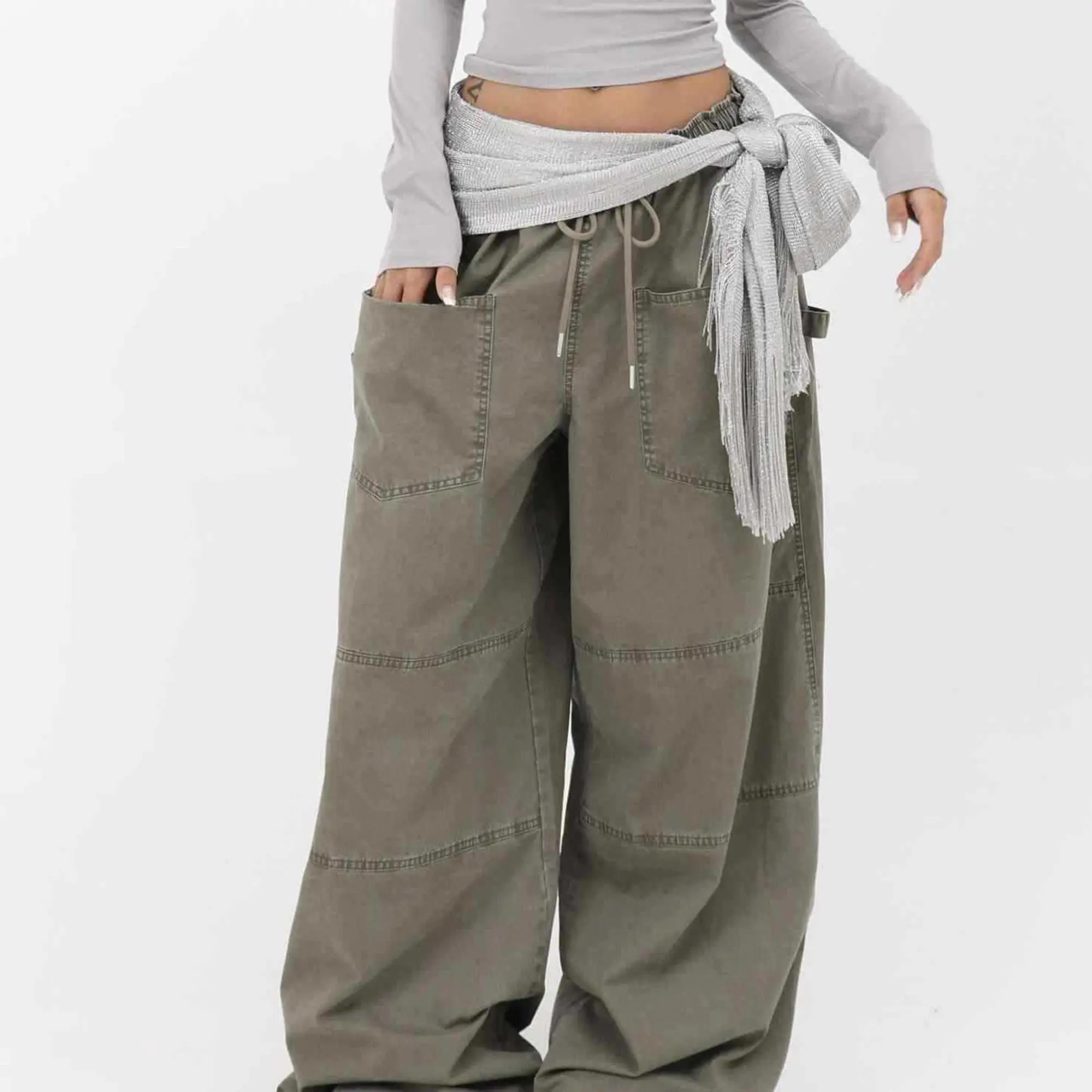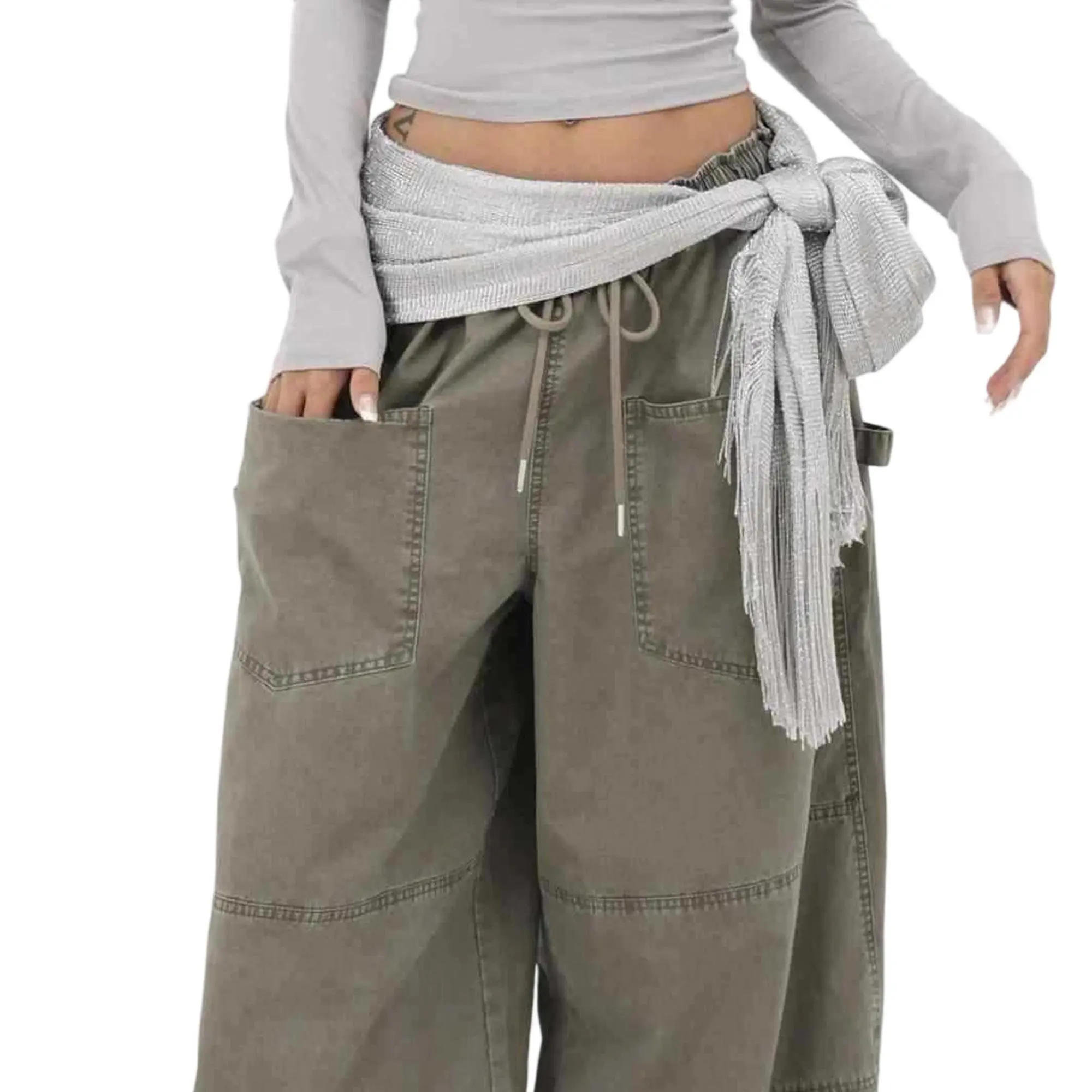 Tanming Women’s Harem Barrel Wide Leg Pants Elastic Waist Baggy Loose Fit Casual Jogger Sweatpants with Pockets Beach Street Coffee Teacher Outfits