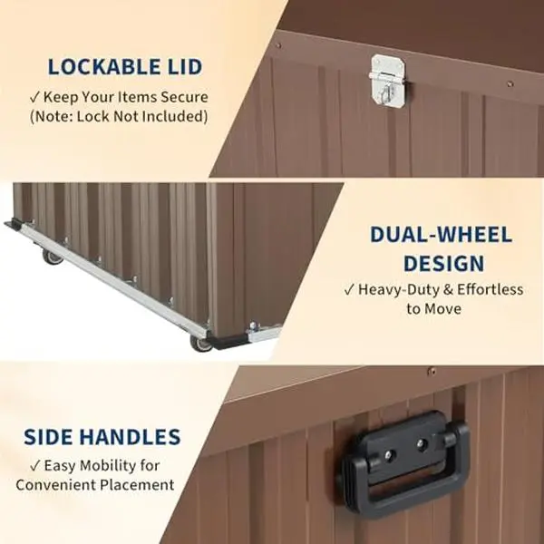 Stronger Steel Build Than Common Plastic Boxes: Built with a 0.6mm galvanized steel frame and 0.3mm color-coated steel panels, this galvanized steel storage box offers better strength, shape retention, and weather resistance than many plastic or wicker-style alternatives that may crack, warp, or fade over time.
