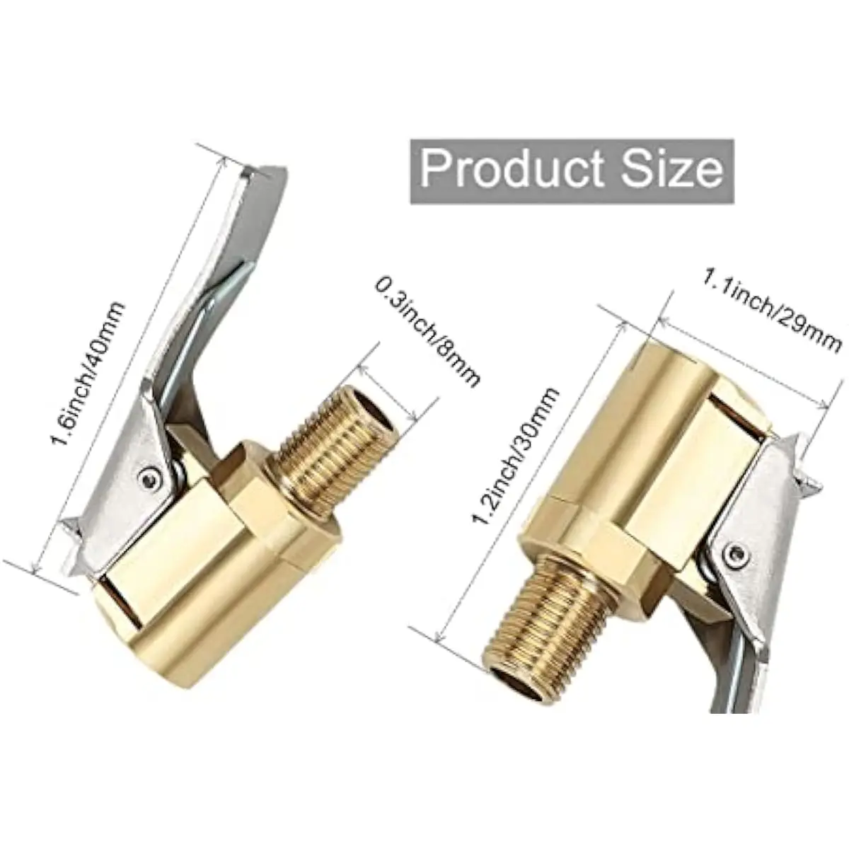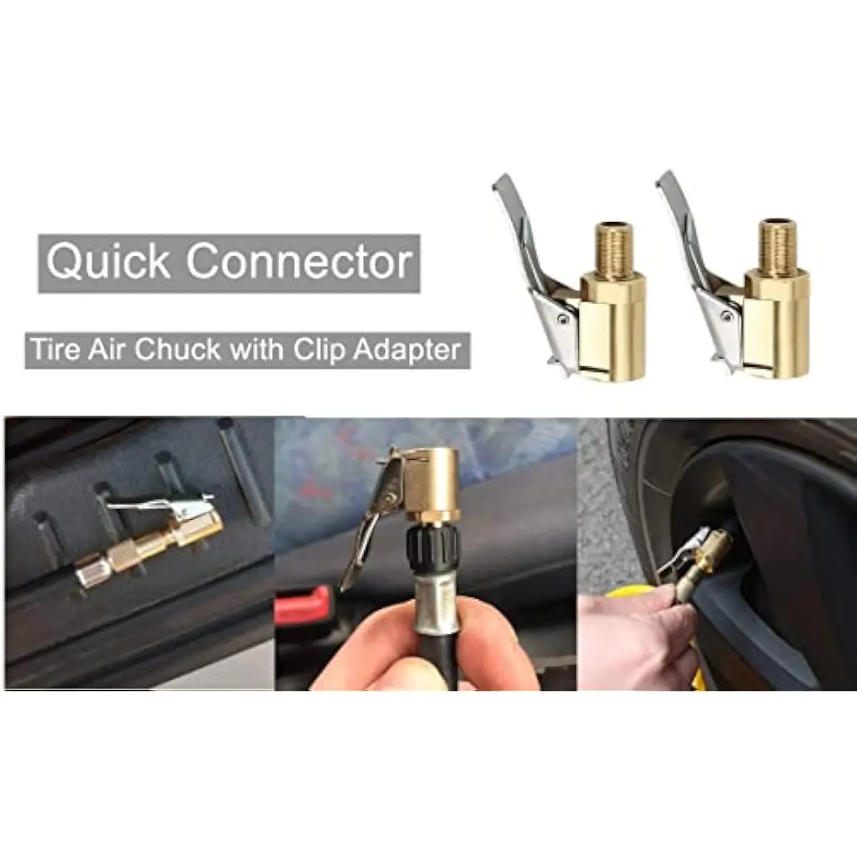 [ Premium Tire Air Chuck With Clip Adapter ]: Each air chuck is made of heavy duty solid brass for higher strength and durability. High quality material also has excellent anti-corrosion, wear resistance yet the maximum pressure is up to 250 PSI.