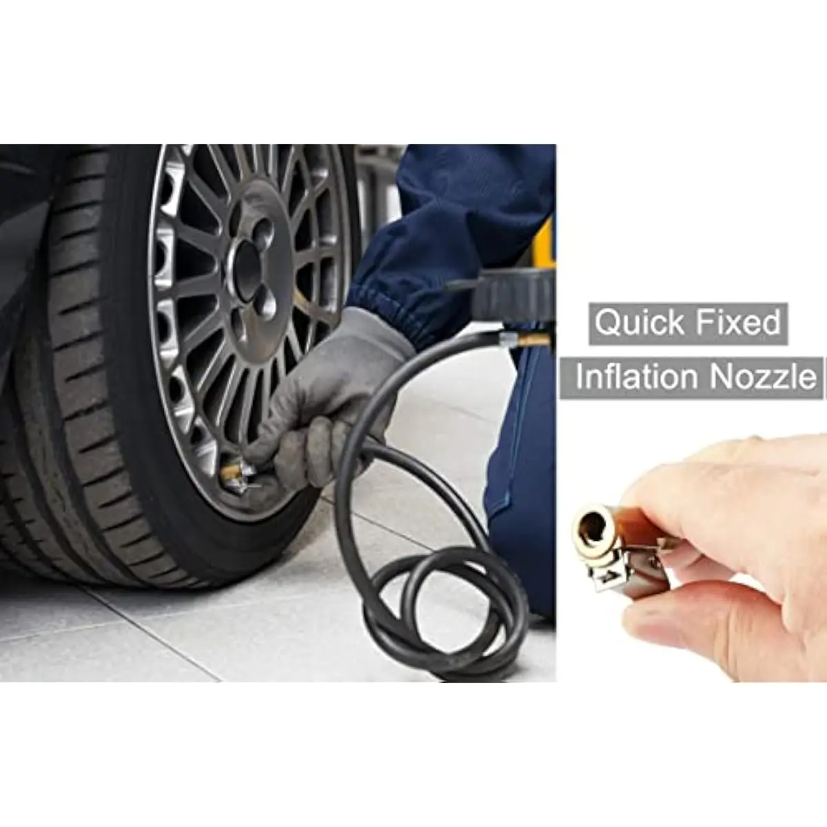 [ No Leakage & High Efficiency ]: Just press down locking clip on tire inflator, push or twist the tire air chuck into the valve stem until it is clamped, release the lock clip, no other tool is required, very practical and convenient. The tire inflator chuck gives you a great seal on the tire valve, it is great Air tire inflator nozzle Hose Adapter accessory.