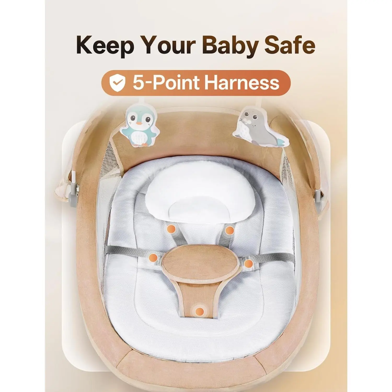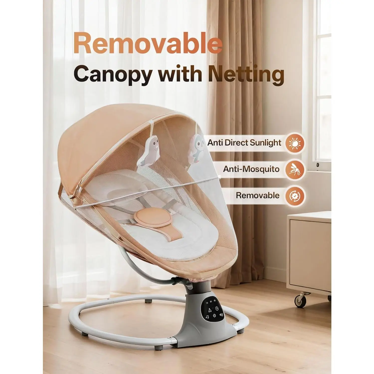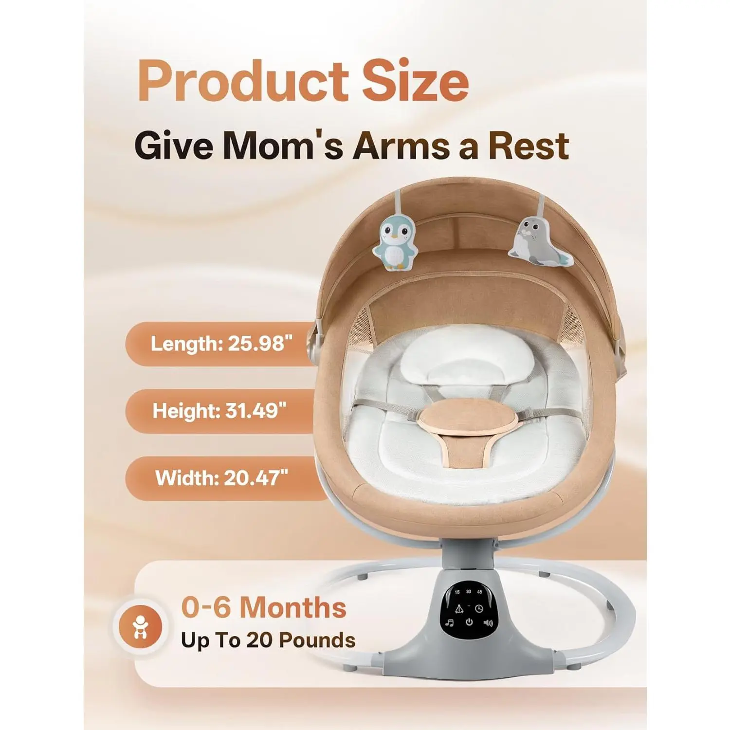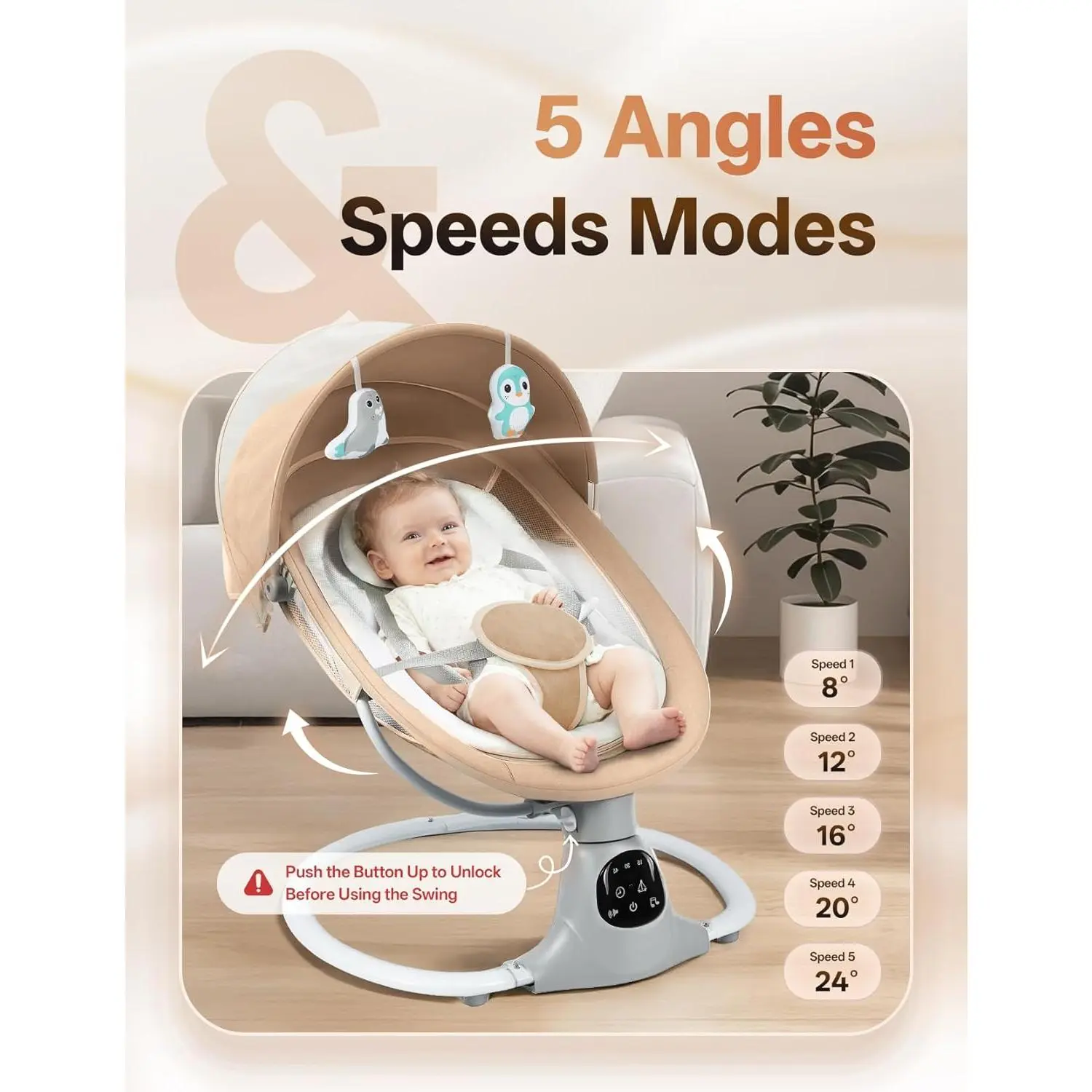 Electric Baby Swing for Infants to Toddler, Portable Swing Baby Rocker with 5 Point Harness, 5 Sway Speed, Bluetooth,12 Preset Lullabies with Remote Control, Infant Swing for Baby Boys & Girls, Khaki