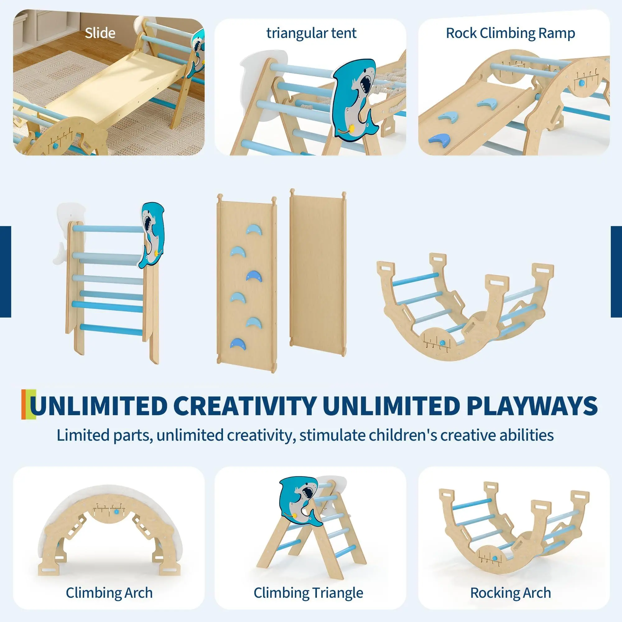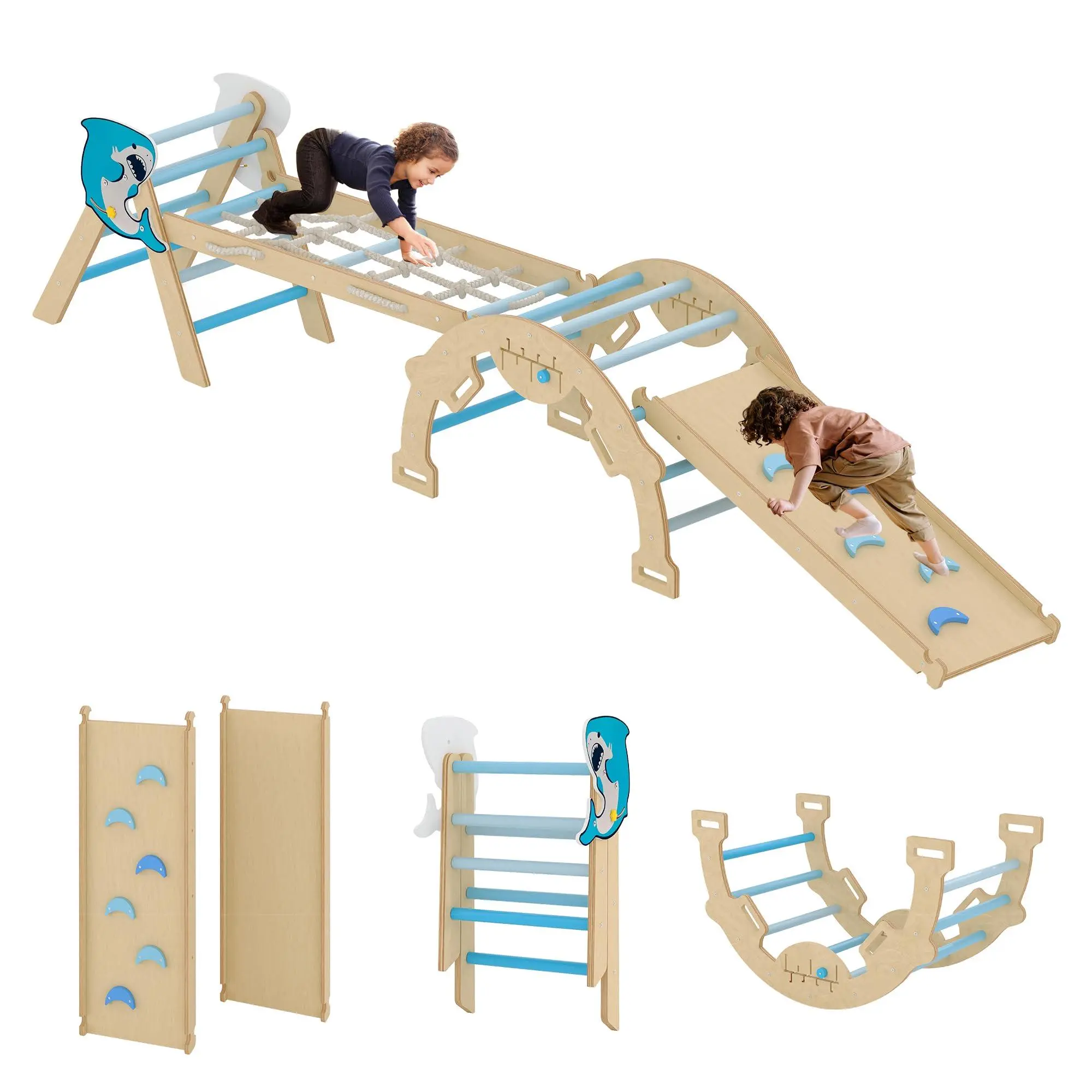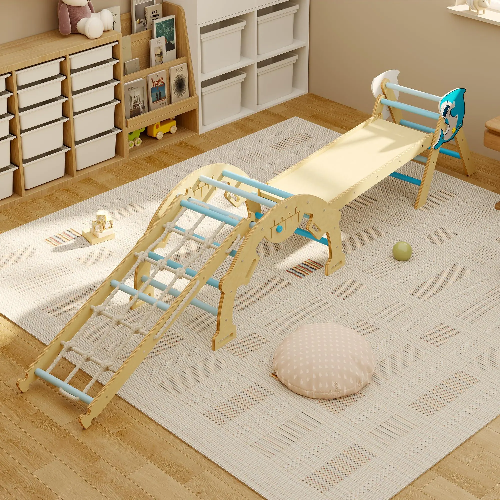 The Perfect Gift for Growing Toddlers - Looking for a meaningful gift? This toddler jungle gym indoor set is more than a toy—it's an investment in your child's development. Ideal for birthdays or holidays, it encourages imaginative play, enhances balance, and creates opportunities for parent-child bonding. Give the gift of active, joyful learning! A variety of colors are available, with dolphin and cat scratch patterns to match different family styles, creating a special children's play space.