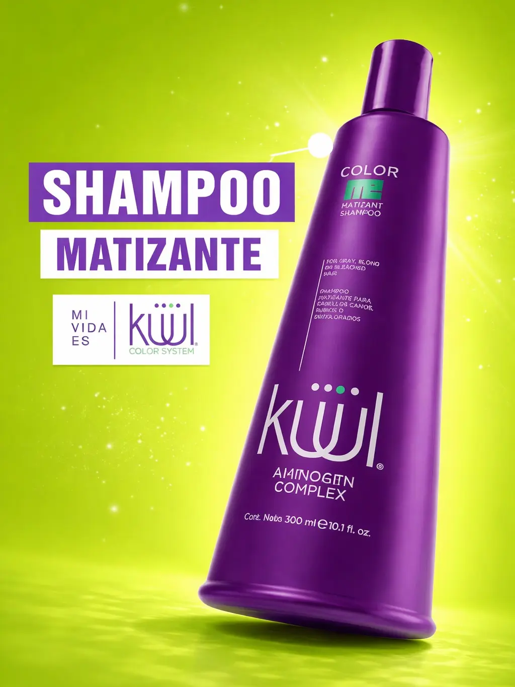 Aplique una pequeña cantidad de Kuul Matizant Shampoo sobre el cabello húmedo y distribúyalo de manera uniforme. Masajee suavemente el cuero cabelludo y el cabello con movimientos circulares para activar la fórmula de shampoo morado / matizante. Deje actuar de 2 a 3 minutos para permitir que los pigmentos matizadores ayuden a neutralizar los tonos amarillentos (brassy) y realzar el cabello rubio, gris y blanco. Enjuague completamente. Repita si es necesario para obtener mejores resultados de tonificación, efecto anti-amarillo y protección del color.