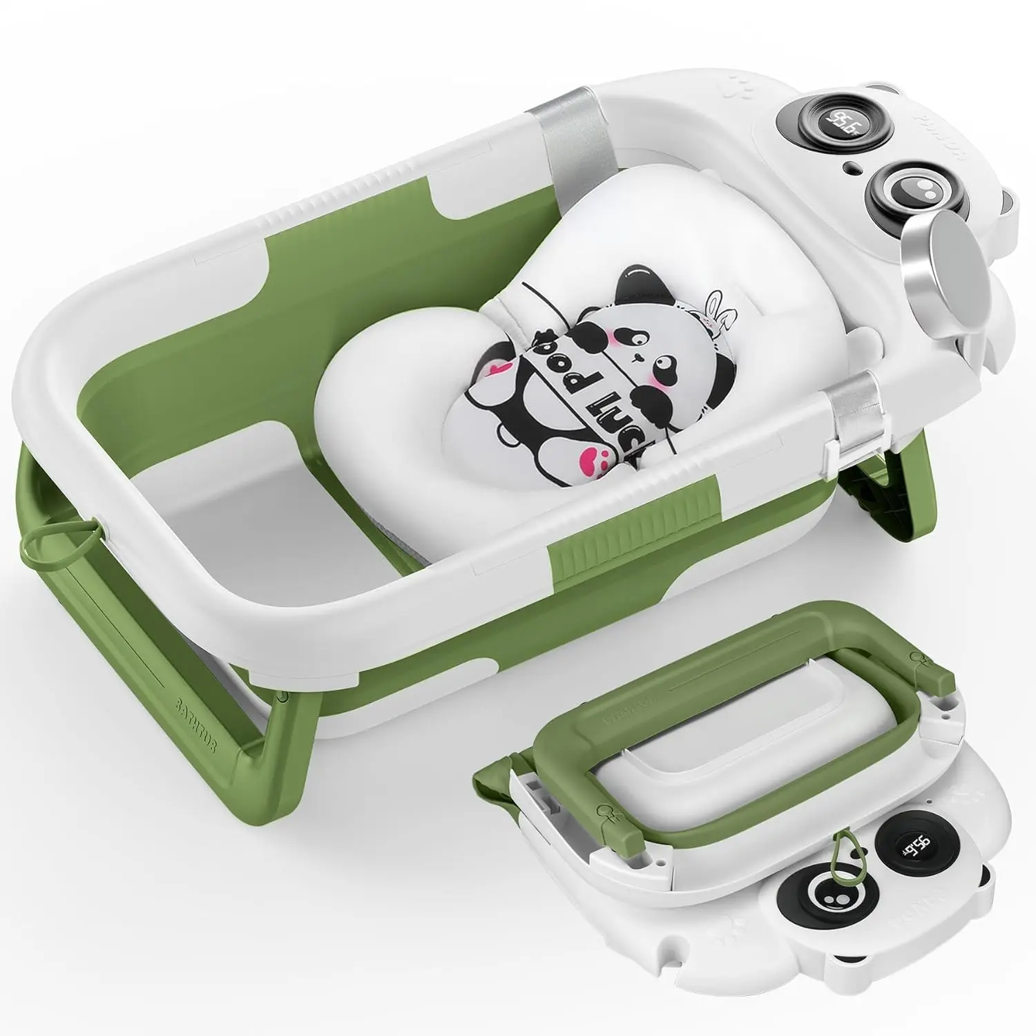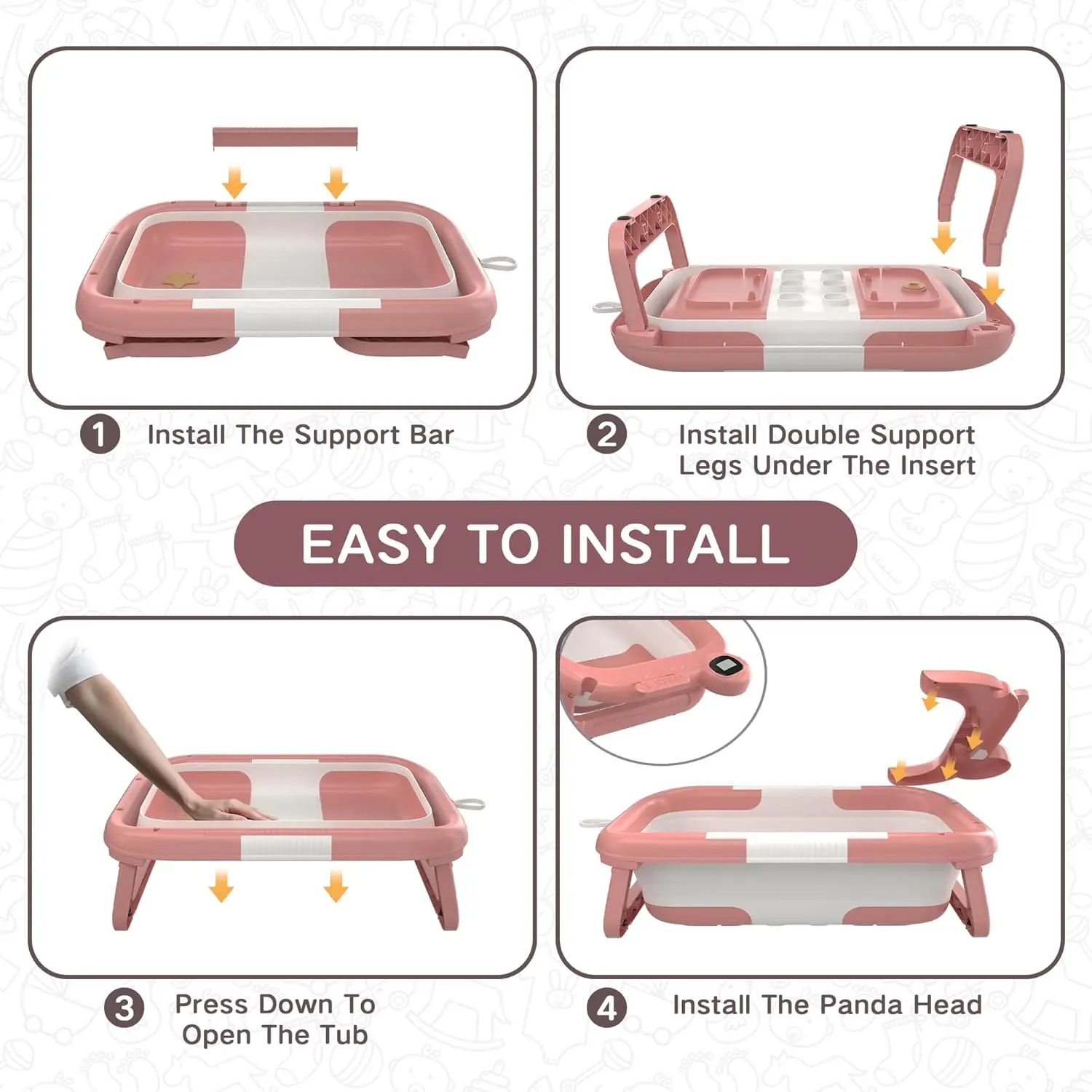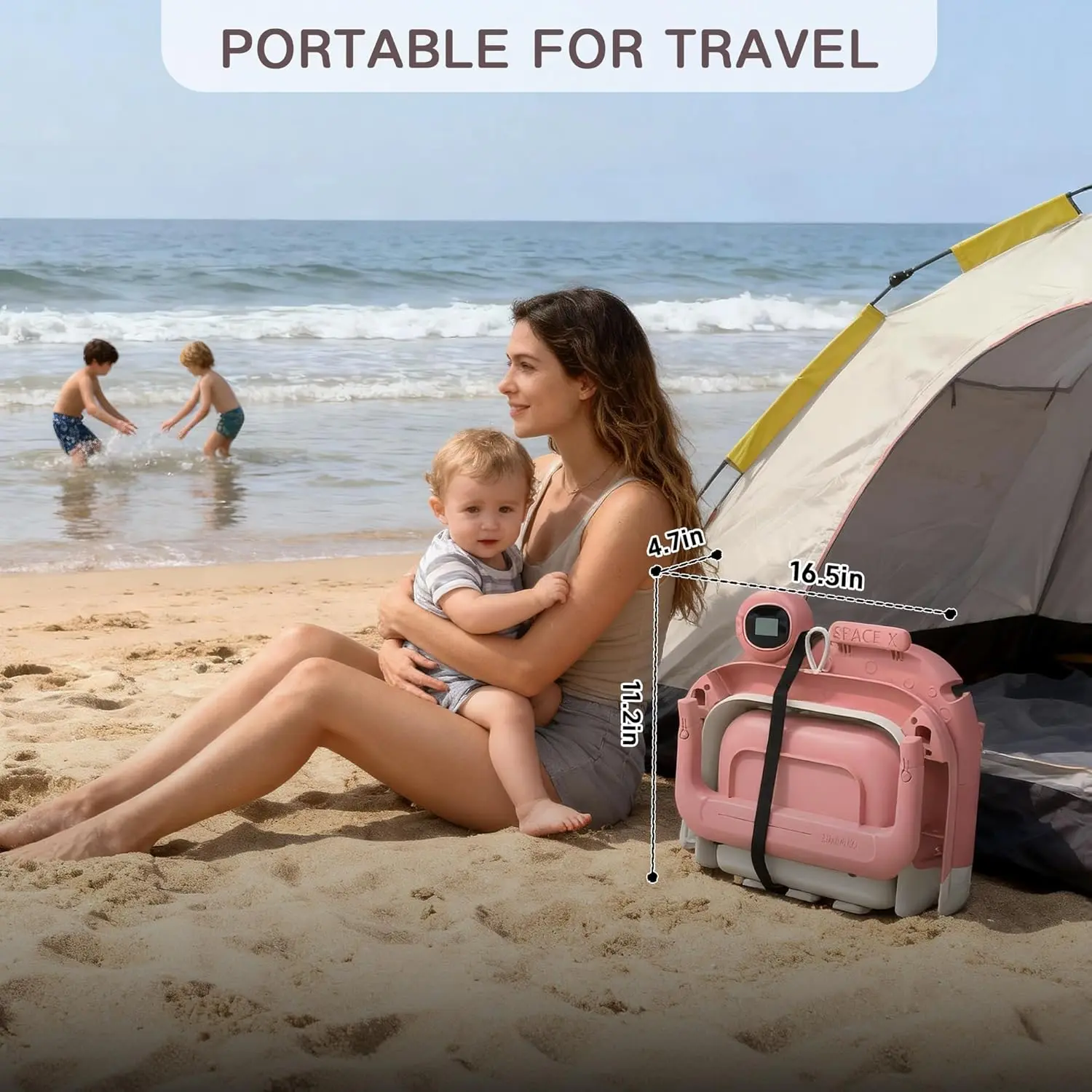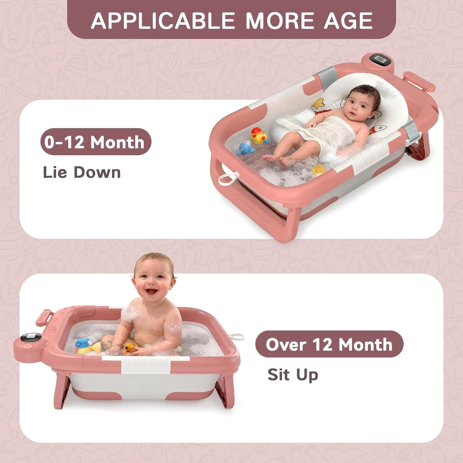 Collapsible Baby Bathtub for Newborn to Toddler (0-24 Months), Portable Baby Bath Tub for Travel, Newborn Bathtub with Soft and Supportive Cushion (Astronaut-Pink)