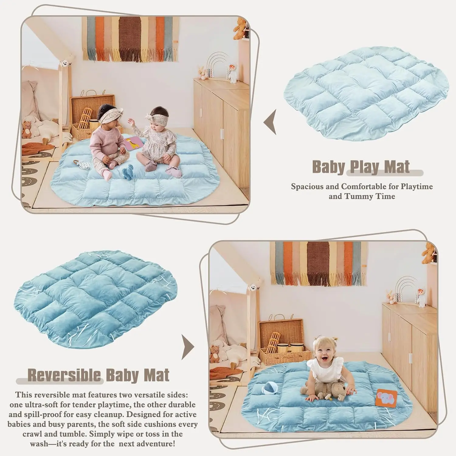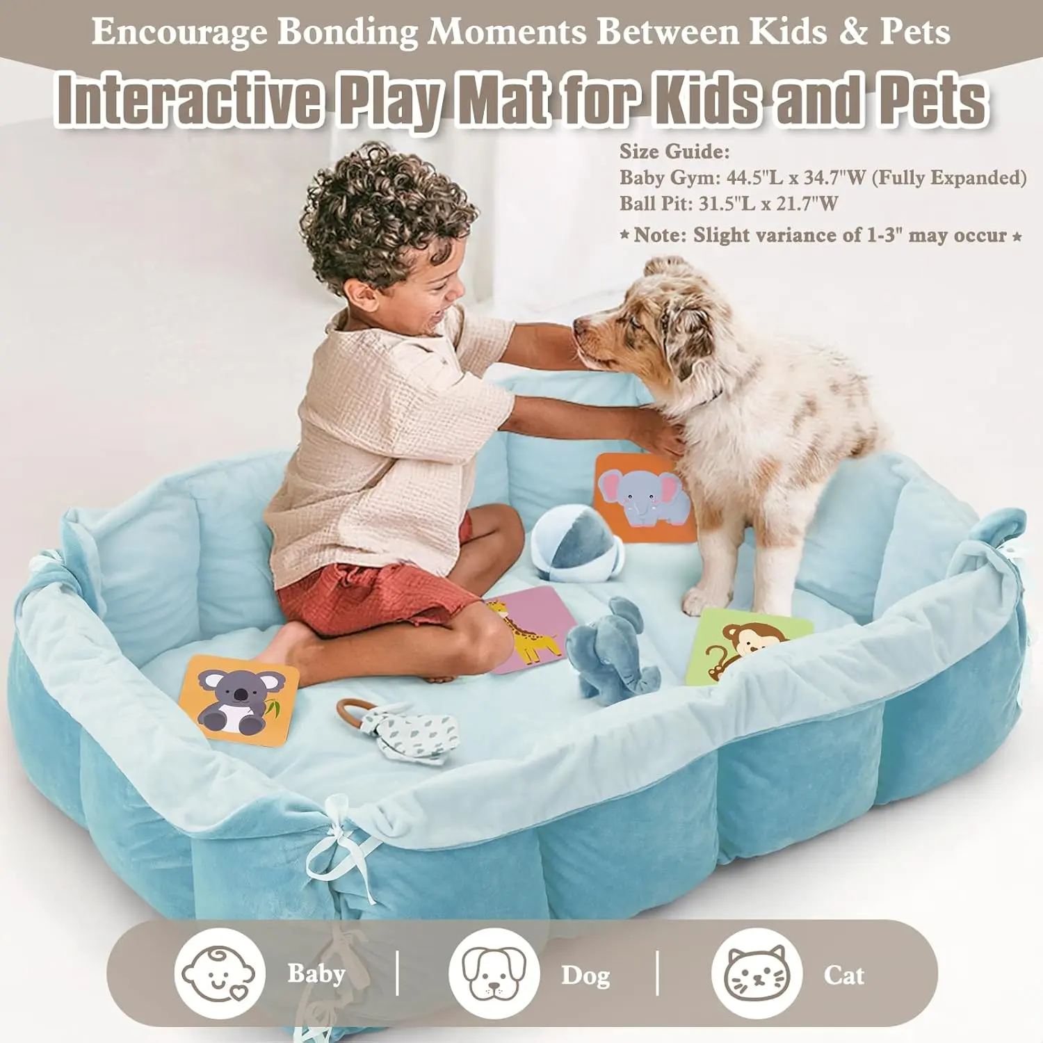 5-in-1 Plush Baby Play Gym, Baby Play Mats, Convertible Baby Gym with Pillow, Tummy time mat, 6 Sensory Toys, Activity Center, Ball Pit, Blue