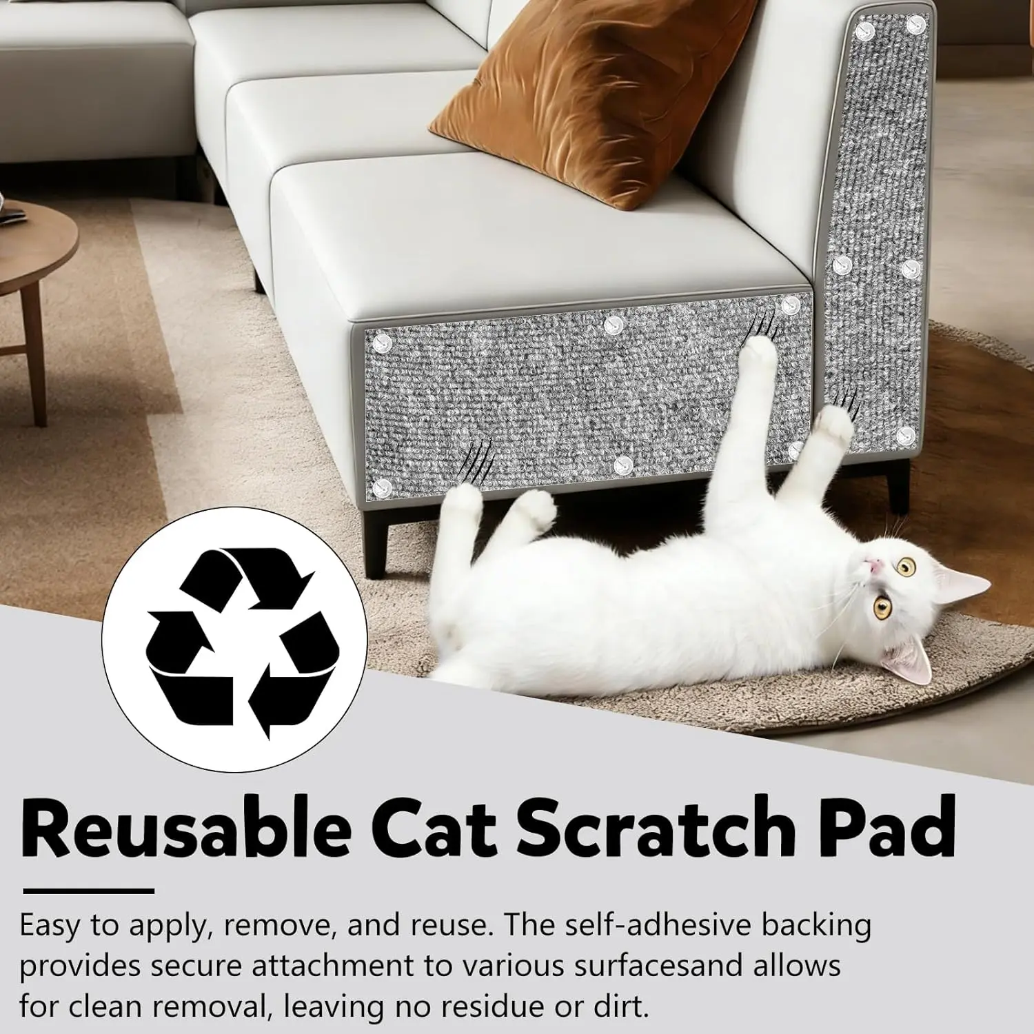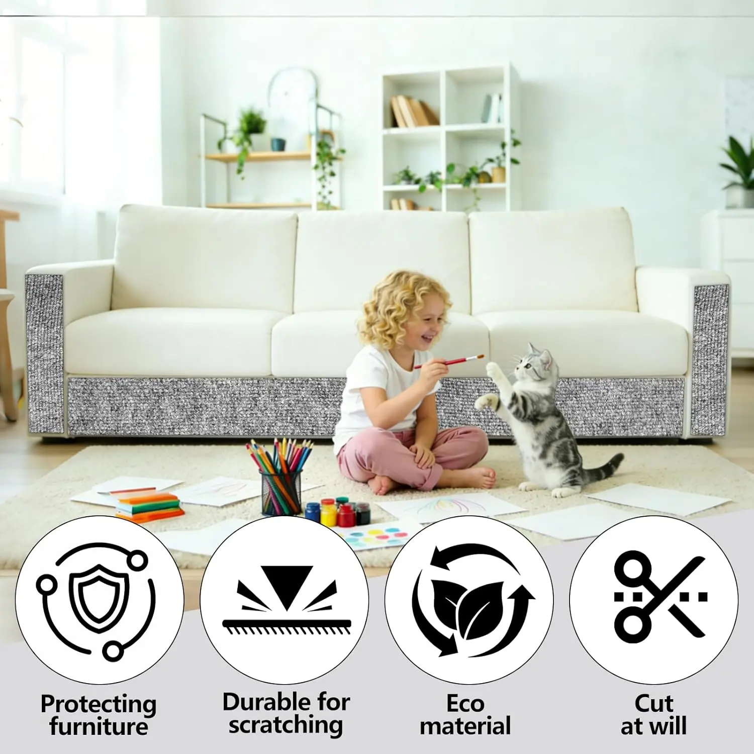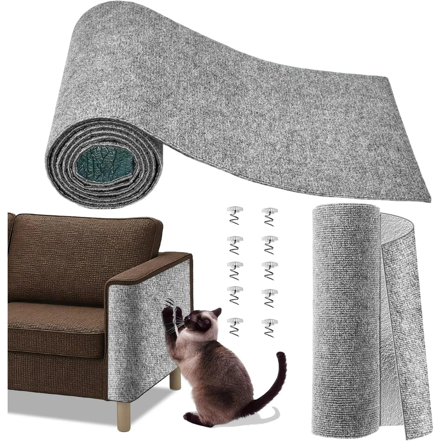 Cat Scratch Couch Furniture Protector,Trimmable Self-Adhesive Cats Claws Scratch Pads, Sisal DIY Climbing Couch Protector for Scratch Post Cat Tree Replacement Indoor(Light Gray, 78.7"x15.8")