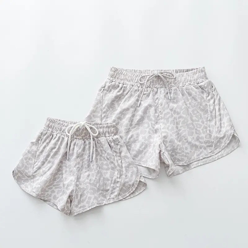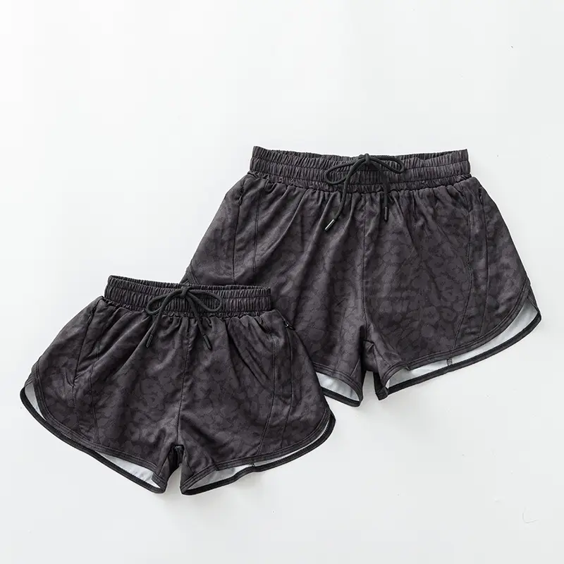 2026-2027-Women’s quick-dry elastic fitness shorts - leopard print camouflage, faux two-layer design, anti-exposure