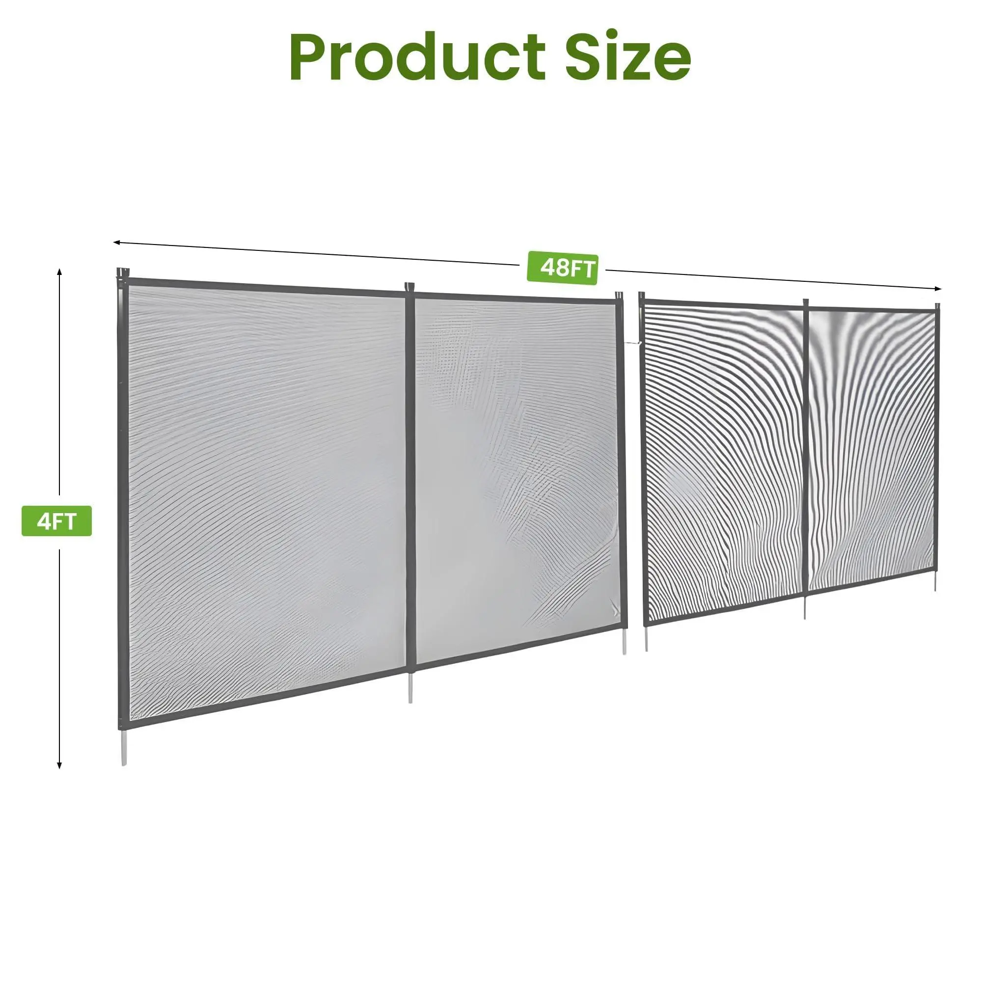 Removable & Flexible Design: Focused on user convenience, this pool fences for inground pools can be easily removed and reinstalled by a single person within just a few minutes. Each panel measures 4ft x 48ft, featuring flexible coverage that adapts perfectly to different pool shapes, whether rectangular, oval or irregular, meeting various usage needs.