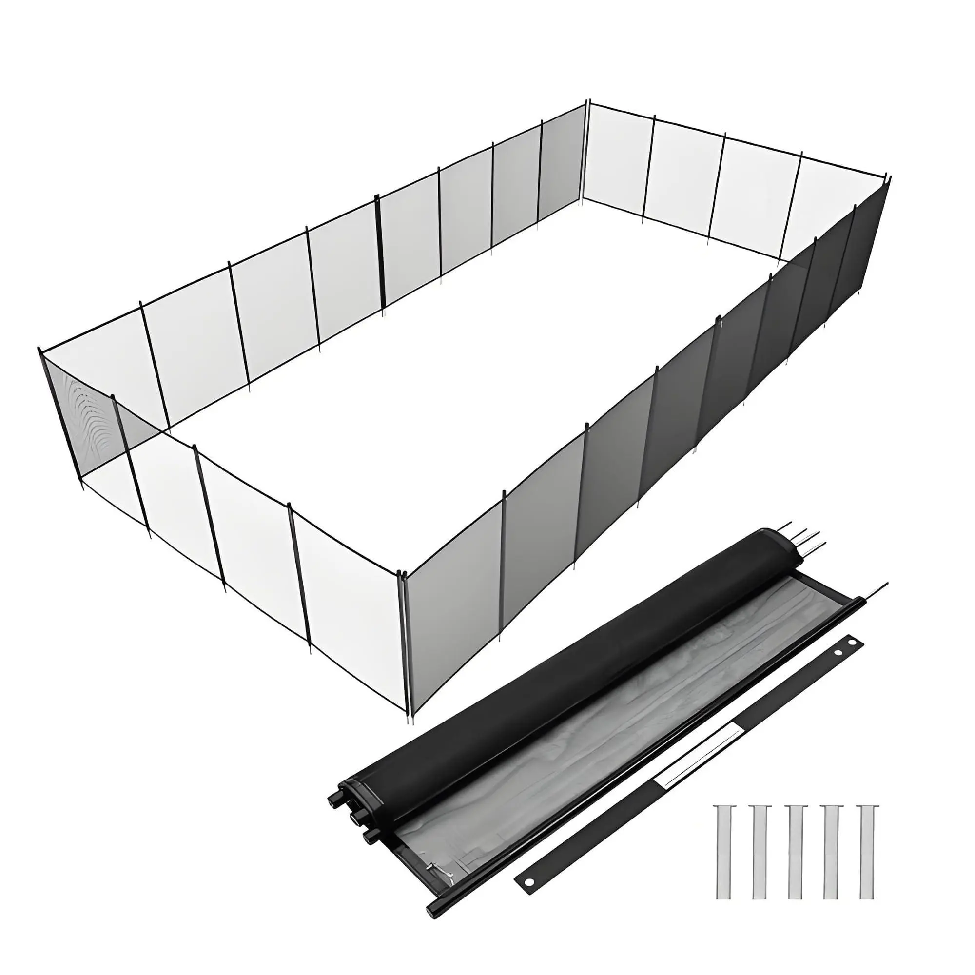 Strong & Durable Materials: Made of high-quality premium mesh fabric and reinforced aluminum, this 48ft mesh pool fence is built to endure various outdoor elements. It is highly resistant to cracking, breaking and strong winds, ensuring long-term stability. When not in use, it can be rolled up easily without damage.