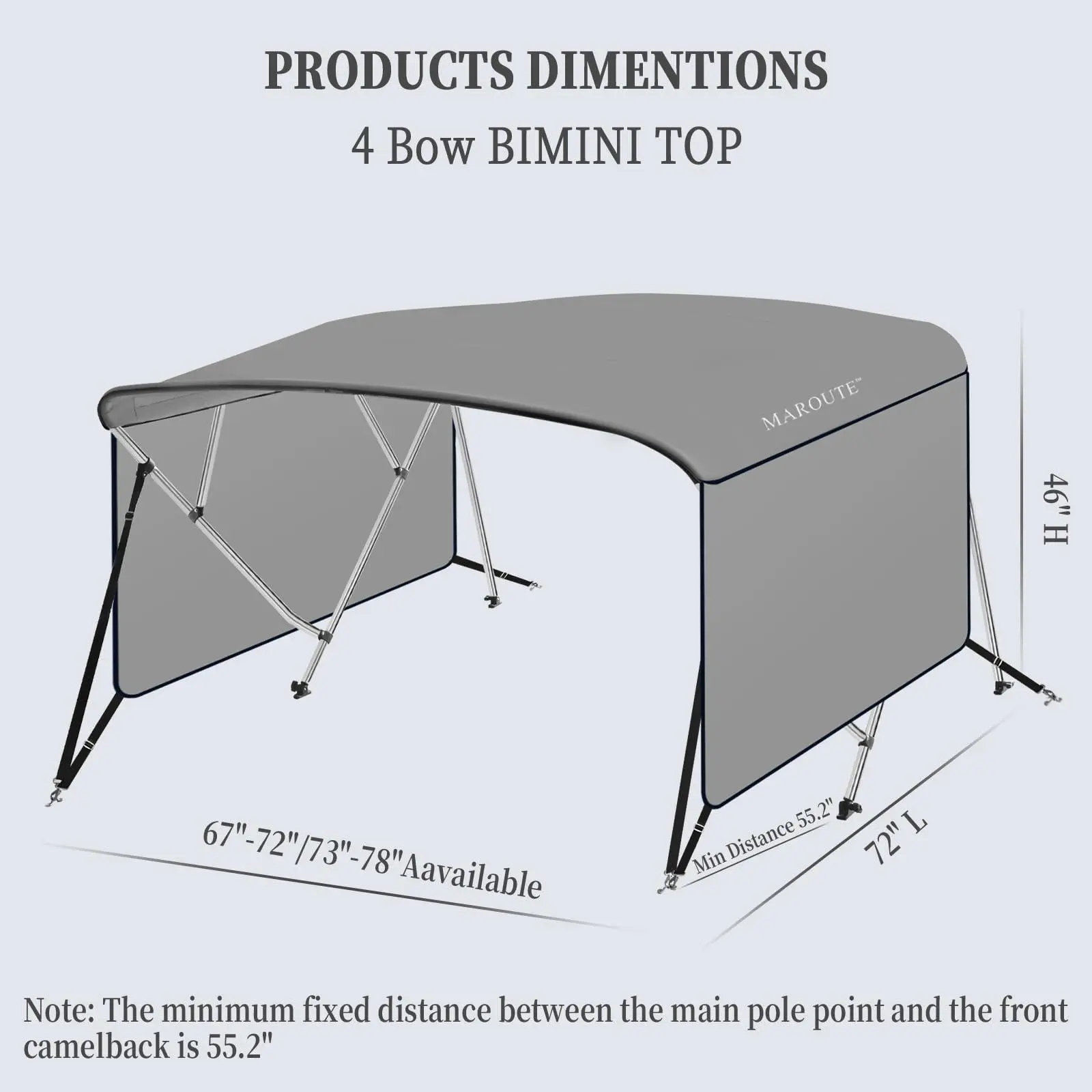 Heavy-Duty Frame: Features a 6000 series high-strength lightweight aluminum alloy frame, with a diameter of up to 1" and a thickness of 1.5mm, our 4 bow boat bimini tops provide solid structural strength and durability