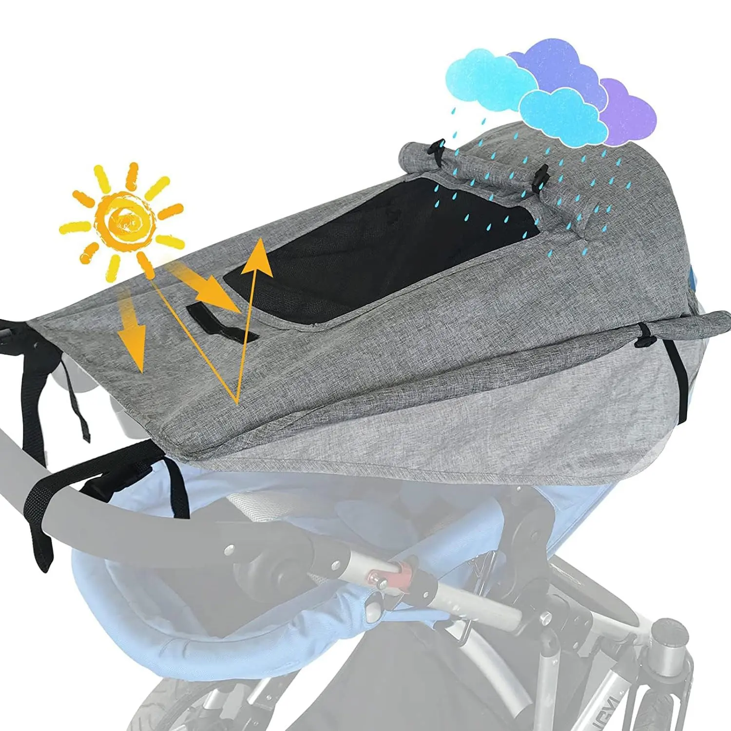 Baby Stroller Universal UPF 50+ Sun Protector Shade Blackout Cover Pushchair Shield Canopy Pram Rain Sunshade With See Through Extender Accessory Easy Installation