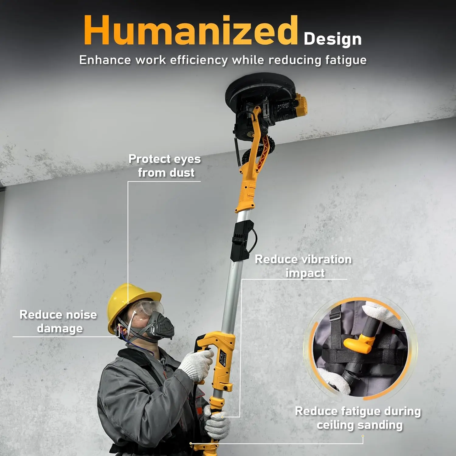 GEVEELIFE Electric Drywall Sander with Vacuum, 13000Pa Suction Power, 120° Pivoting Head & Ergonomic Handle, Foldable Wall Sander with LED Light & Dust Bag for Ceilings & Walls
