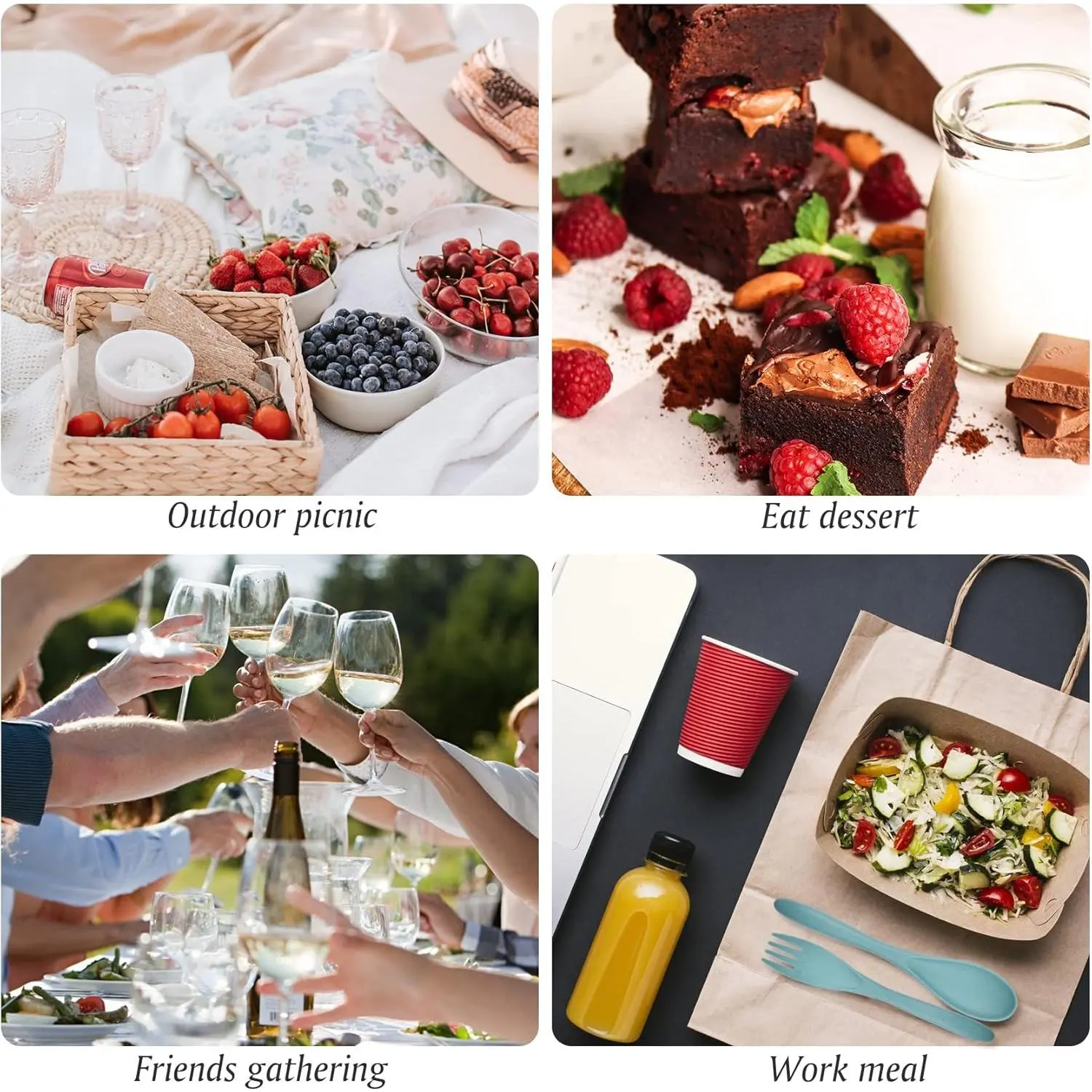 2 sets of reusable utensils with cases-each includes spoon, knife, fork & portable storage box!Food-grade wheat straw material, non-toxic & dishwasher safe.Safe for the whole family, perfect for ditching single-use plastic!