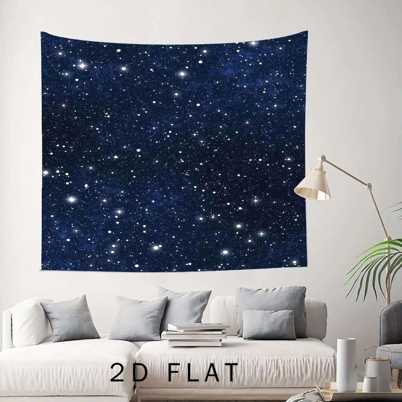 2D Flat Printing - Outer Space Galaxy Tapestry, Dark Blue Starry Night Sky Stars Moon Ceiling Tapestries, 60"X40"Inch Fantasy Cosmic Universe Celestial Small Tapestry Wall Hanging for Bedroom Room Dorm