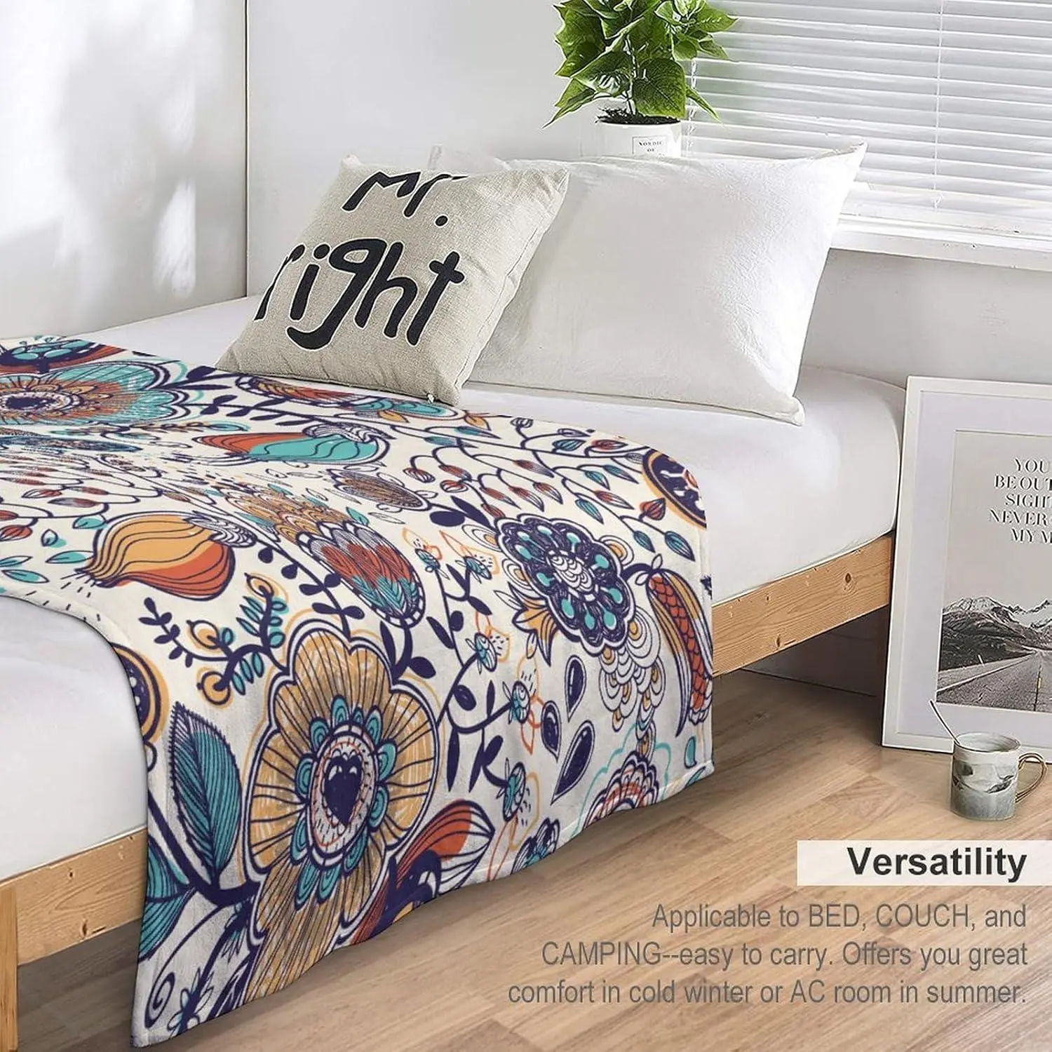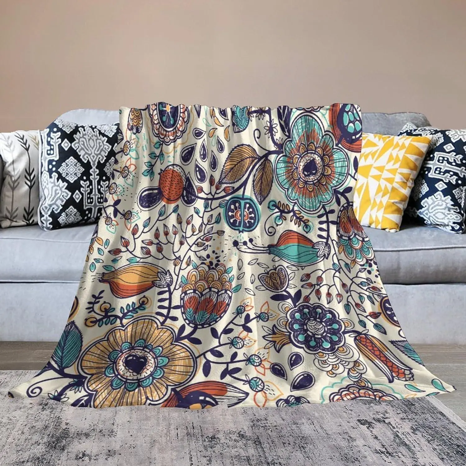 5. Retro Flowers Flannel Throw Blanket Bohemian Art Abstract Flower Fruit Pattern Pattern Soft Blankets for Home Couch Bed Sofa Chair Travel Decor for All Seasons, 50"x70"