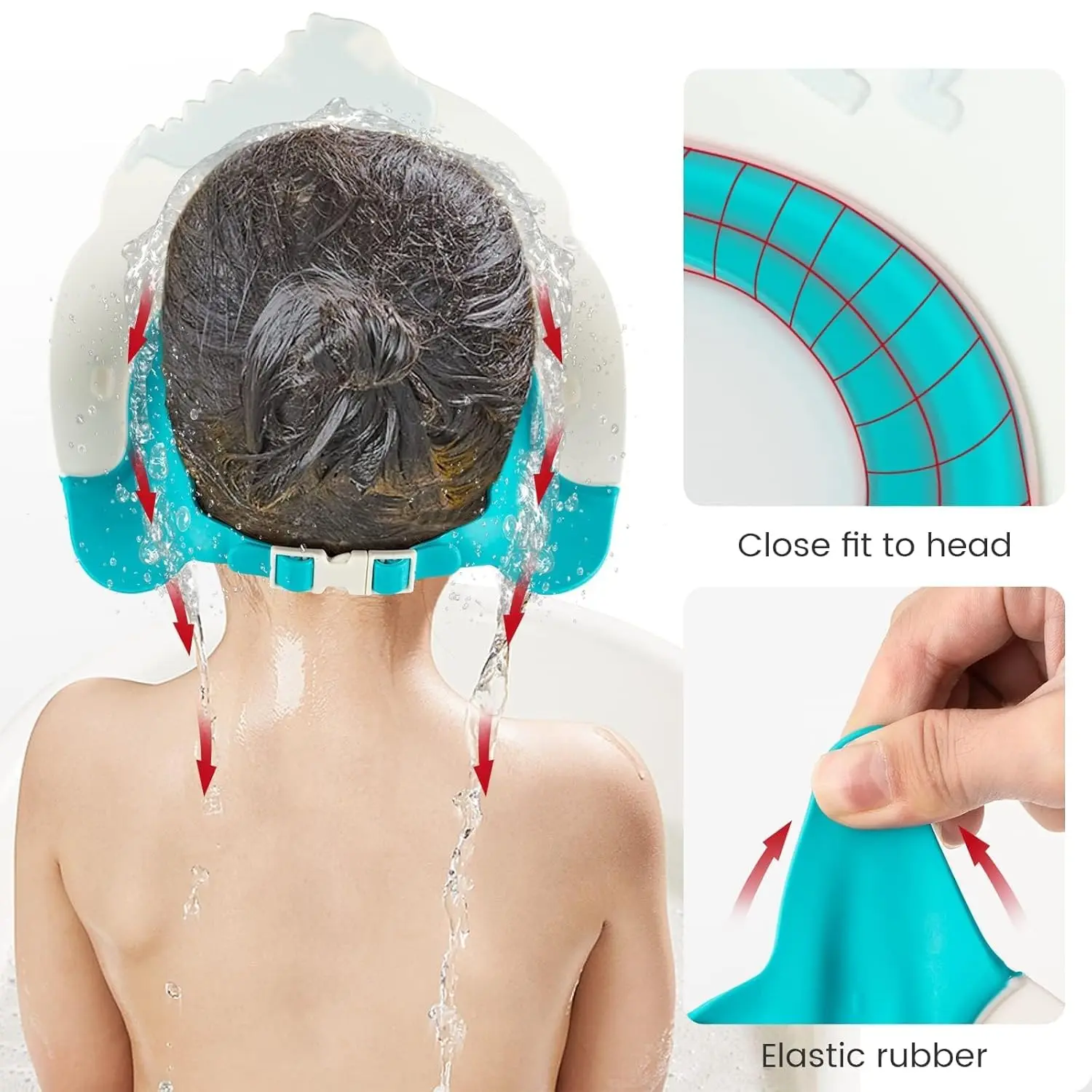 Baby Shower Cap for Kids, Baby Bath Shampoo Visor Cap Hair Washing Shield Adjustable Silicone Bath Hat for Toddler Girls and Boys (Dinosaur,Blue)