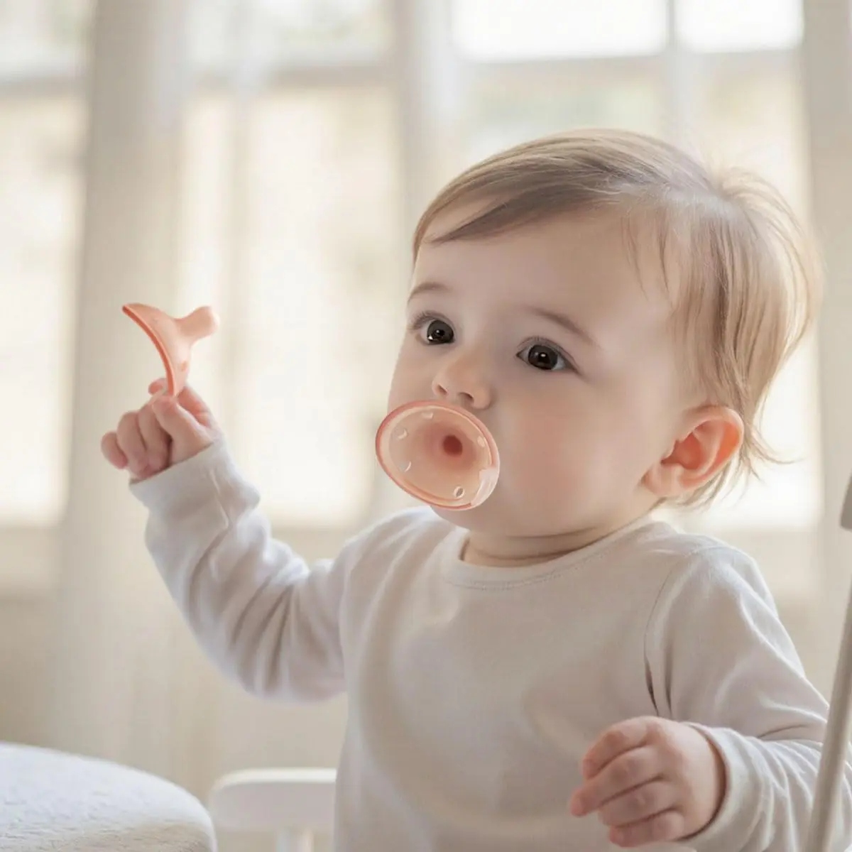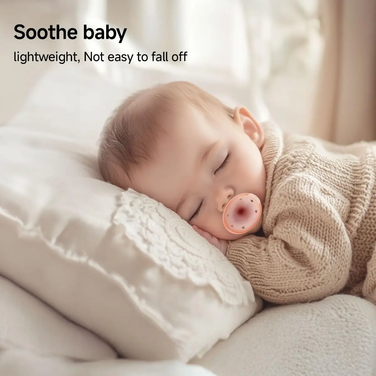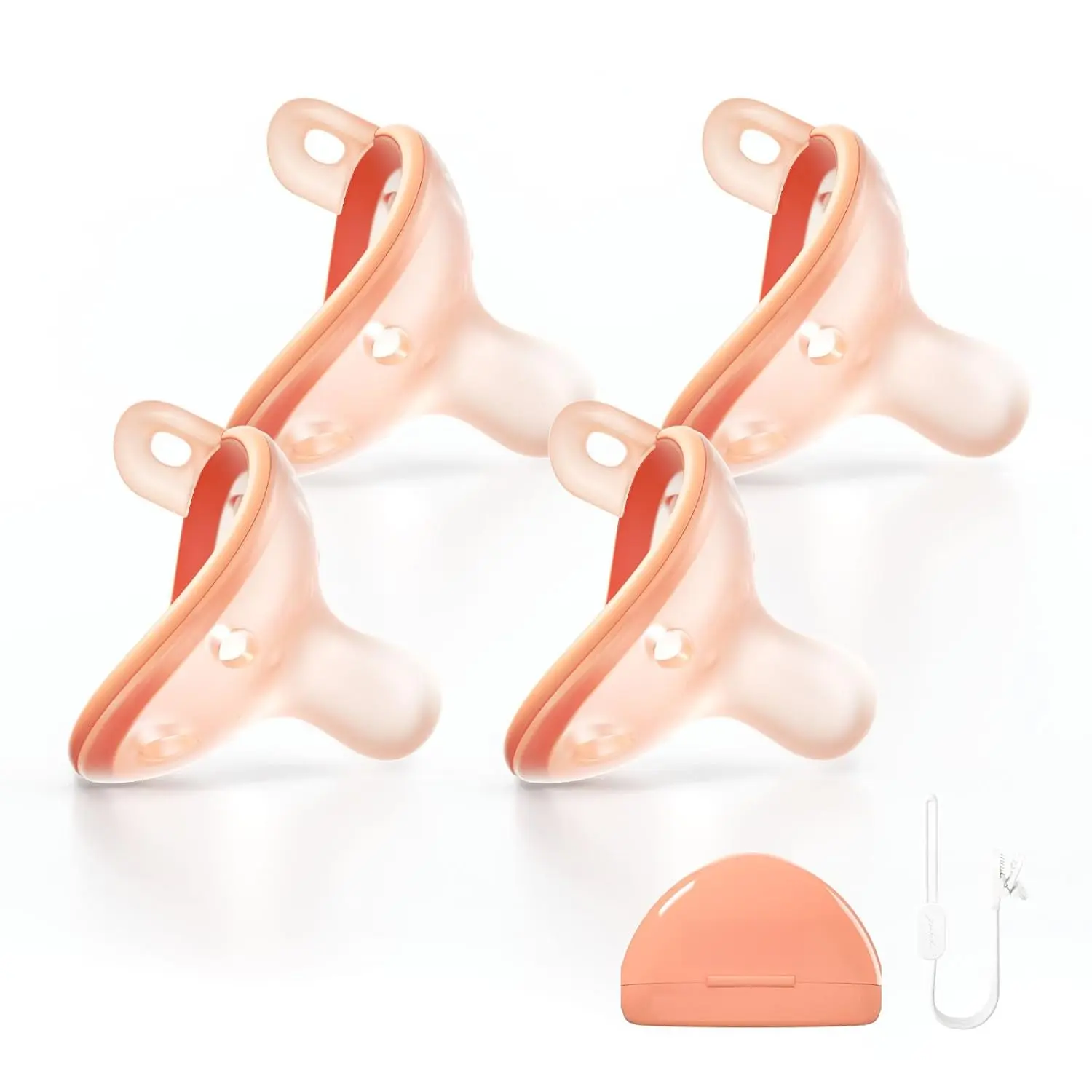 Baby Pacifiers 0-6 Months, BPA-Free Silicone Nipple, Lightweight One-Piece Design, Set of 4, with a Pacifier Chain & Pacifier Case