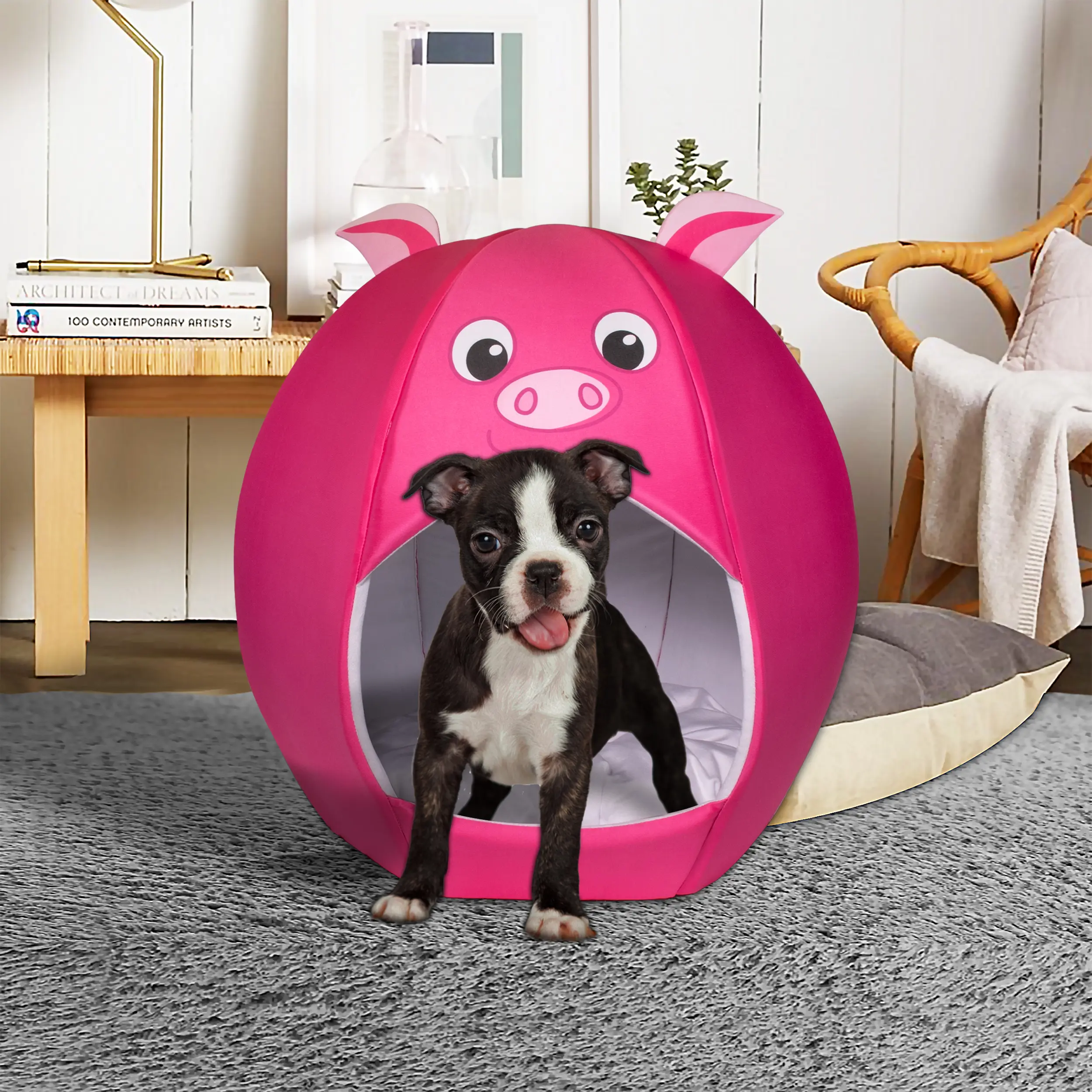 Add a touch of fun to your home with this Pig-themed pet cave. Designed for durability and ultimate snuggling.