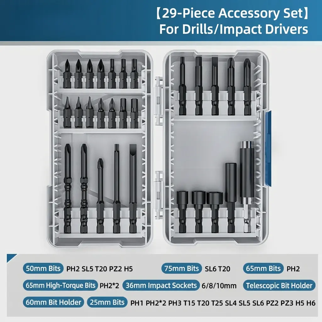 29 PCS S2 Steel Impact Screwdriver Bit & Socket Set, Telescopic Extension Bar Quick Change Kit, High Torque Bits with 6-10mm Nut Drivers, 1/4" Hex Shank for Automotive Tight Spot Repair