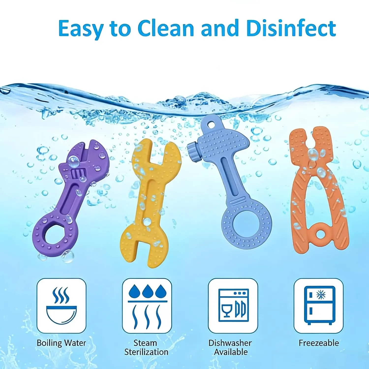 5. Baby Teething Toys, Baby Teethers for 3-6months, Freezer BPA Free Silicone Teethers for Babies, Hammer Wrench Spanner Pliers Shape Teether Baby Chew Toys