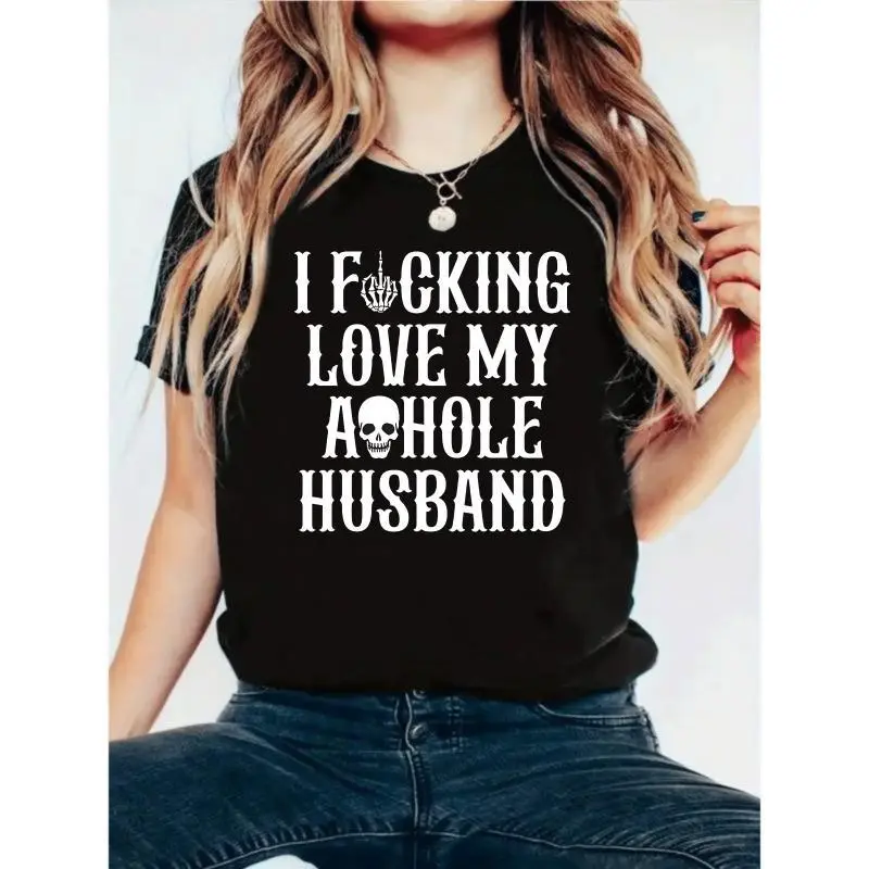 I Fcking Love My Ahole Husband T Shirt Women Funny Couple Shirt Black Graphic Tee For Wife And Husband Gift