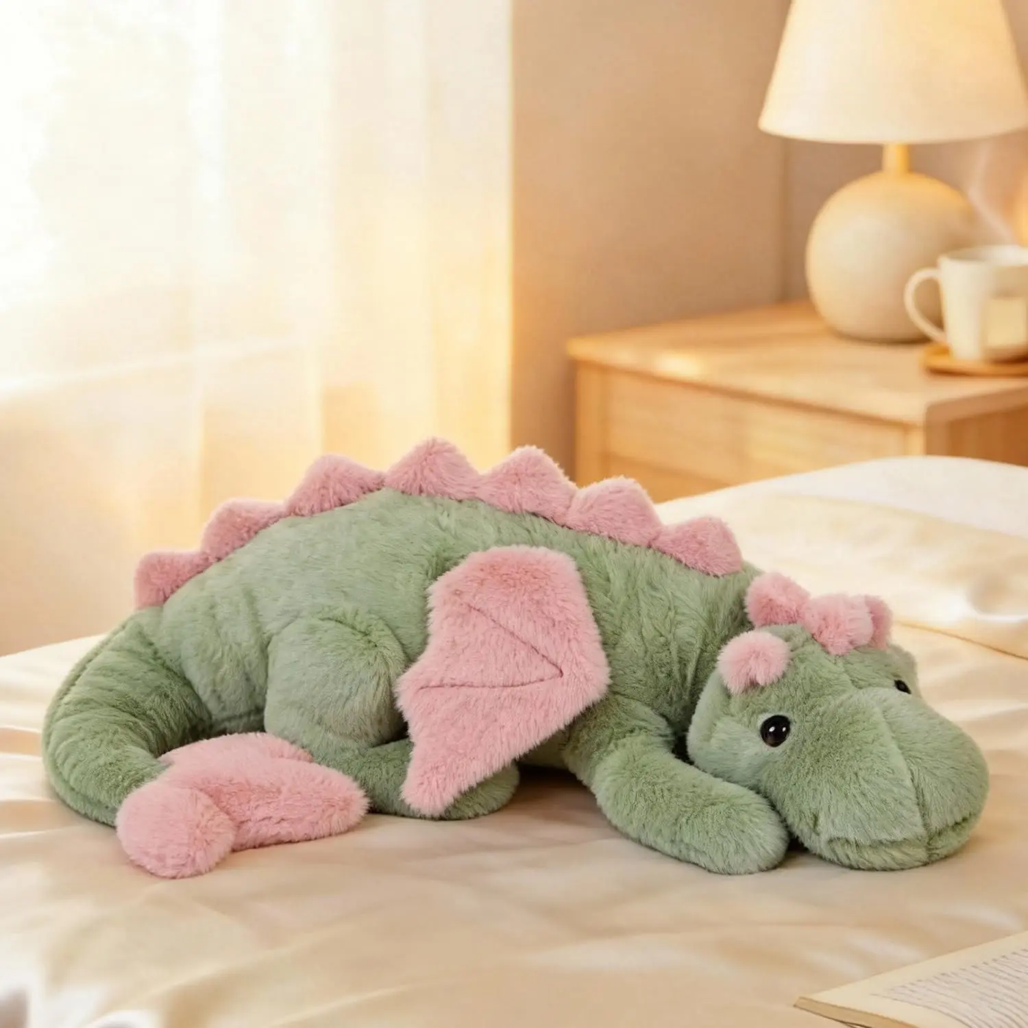 Large 36in Cute Dragon Stuffed Animals Plush Toy Soft Matcha Green Pterosaur Plushie Giant Fuzzy Dinosaur Pillow Plushies with Pink Wings Cuddly for Friends Family Member