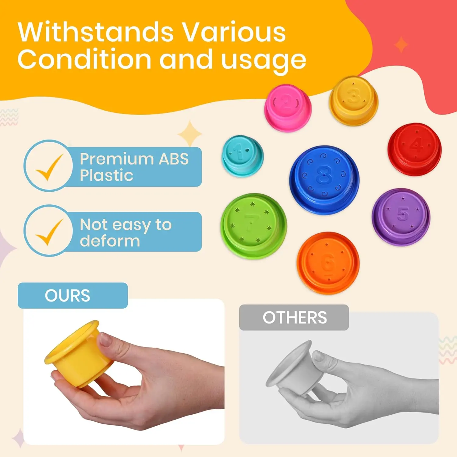 Stacking Cups Baby Toy Educational Cup Stacking Set 8-Pc Rainbow Stackable Cups | Nesting Cups for Babies 6-12 Months | Stacking Cups for Toddlers 1-3 Perfect for Indoor/Outdoor