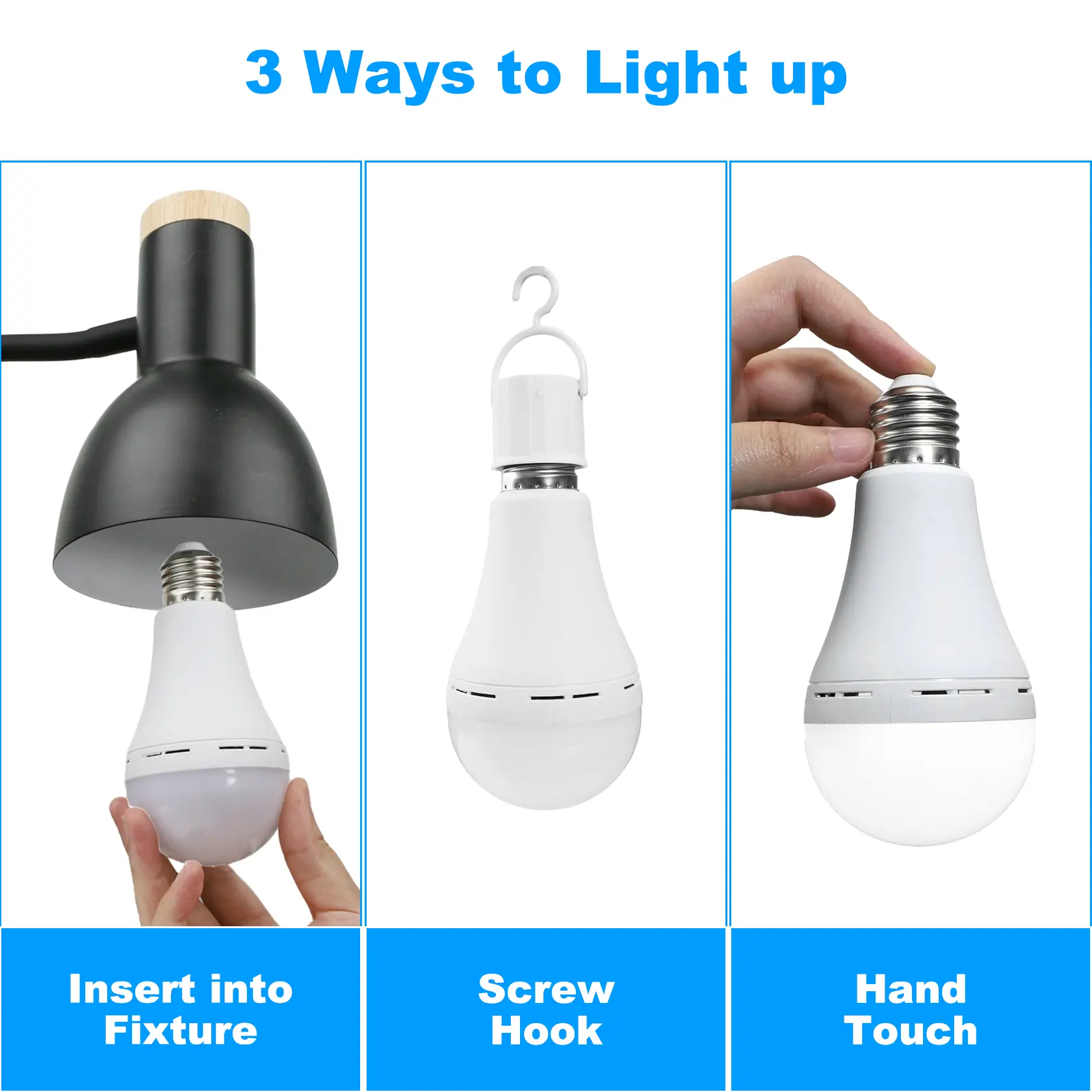 This rechargeable emergency bulb provides 4-5 hours of illumination during emergencies and comes with a convenient hook for outdoor activities and indoor lighting. It is an essential tool for power outages, storms, and other emergencies.
