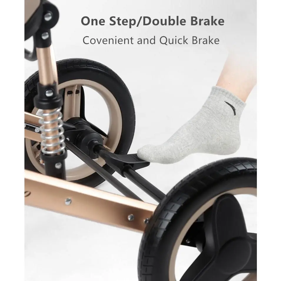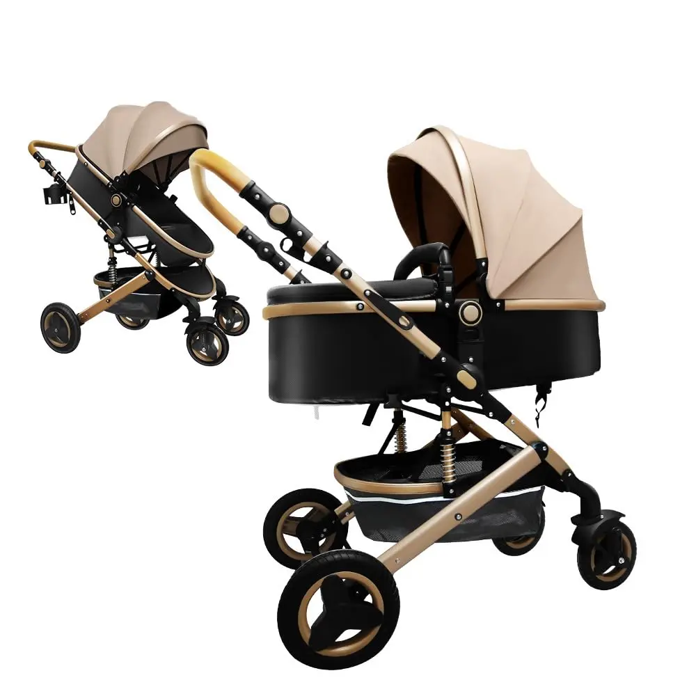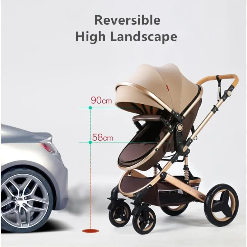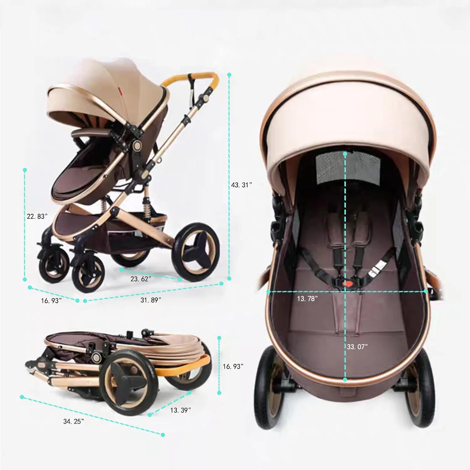 Luxury Baby Stroller 2 in 1 with Bassinet Mode Foldable Infant Stroller High Landscape Reversible Stroller Travel Pram Baby Carriage (Black)